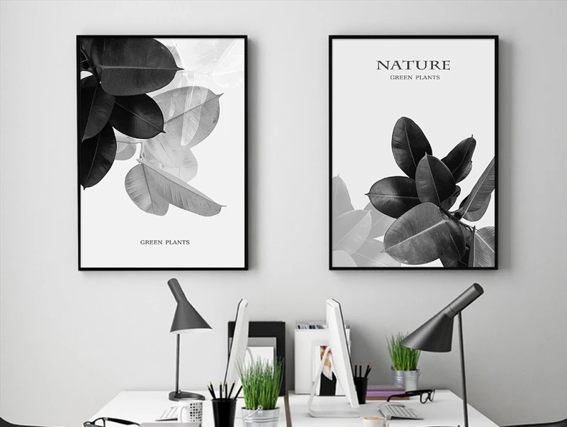 Черный и белый Листья Современные Абстрактные растения лист холст с печатью постера живопись дома стены искусства куадро салон Decoracion 2-17