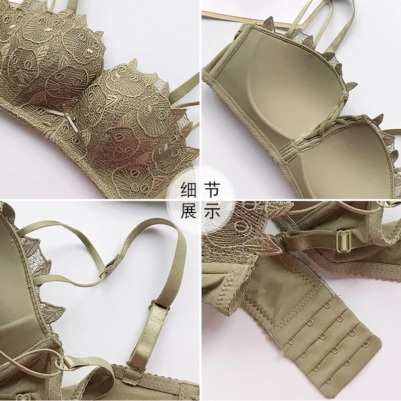 Название продукта: Vinninod, новый стиль, женское зеленое беспроводное нижнее белье, зеленый комплект с бюстгальтером пуш-ап с рисунком животных, сексуальные кружевные регулируемые комплекты нижнего белья Размер ремешка: 32 = 70 34 = 75 36 = 80 38 = 85 Размер чашки: A B Материал: полиэстер + хлопок + спандекс + нейлон + кружево Посылка: бюстгальтер * 1 трусики * 1 Крючок и глазки: три Панели: размер XL, подходит для детей от 2,6 до 3,2 дюймов Напоминание: этот бюстгальтер азиатского размера, пожалуйста, выберите на один размер больше. Для примера. 34/75B в США, 36/80B для этого.