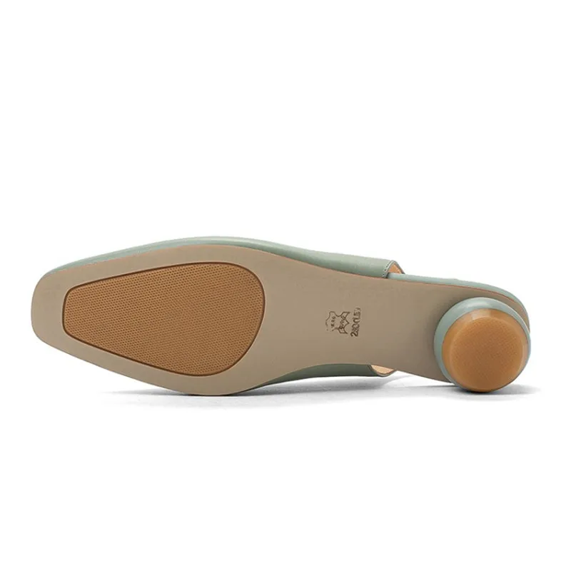 Женские туфли телесного цвета на высоком каблуке с круглым носком и Т-образным