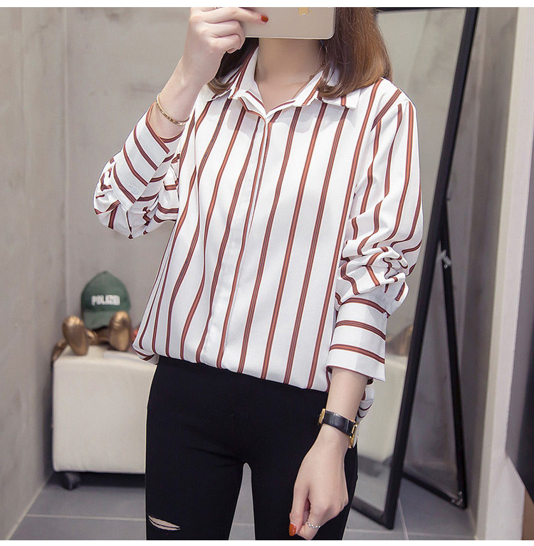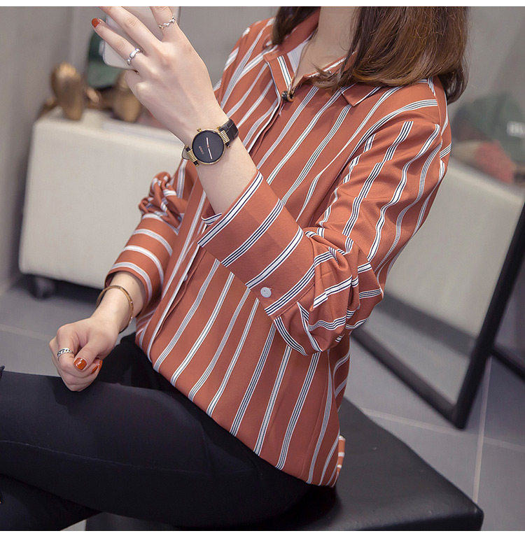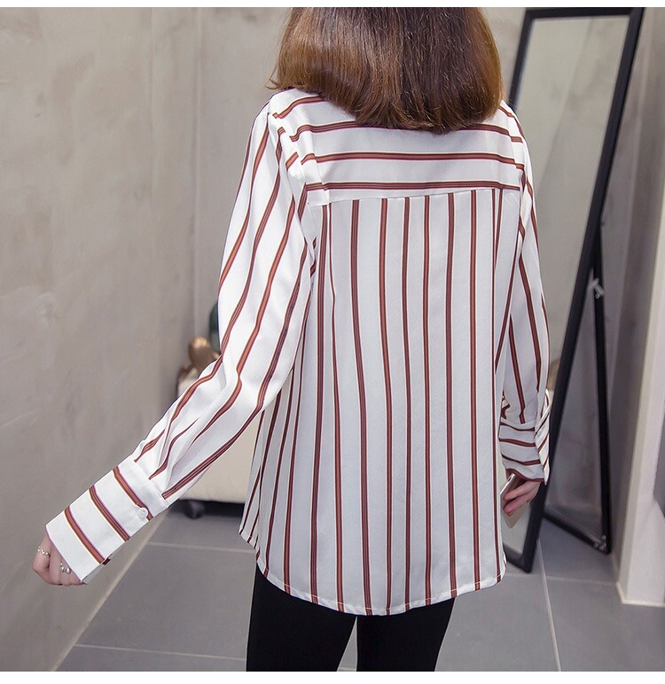Новые женские блузки, рубашки, весенний стиль, элегантные офисные женские топы, модные повседневные свободные рубашки в полоску с длинным рукавом для женщин