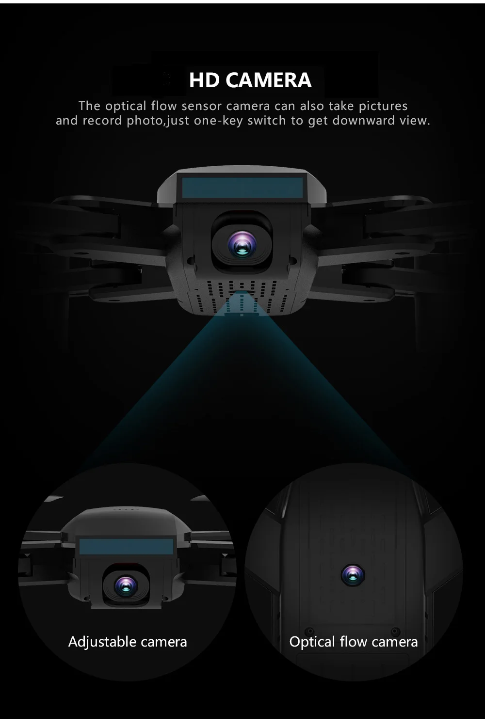 Со складным передатчиком, отличный дизайн и легко носить с собой. Режим скорости H/L и функция 3D eversion для вас, чтобы испытать крутой полет. 2,4G 4CH передатчик и 6-осевой гироскоп для вашего легкого и стабильного управления. Камера 720P/1080P/4K может запечатлеть и записать каждый прекрасный и незабываемый момент. С привлекательным безголовым режимом, полностью решая проблемы пилота с потерей ориентации. Режим удержания высоты облегчает управление дроном для начинающих и более стабильный для аэрофотосъемки. Одним нажатием кнопки выкл/посадка/остановка делает работу более удобной и она очень подходит для начинающих операций. С одной клавишей автоматической функцией возврата, самолет может легко найти путь домой. Режим управления гравитацией: позволяет управлять дроном вперед/назад/влево/вправо в соответствии с углом наклона мобильный телефон. Управление Wi-Fi для реализации передачи видео в реальном времени путем сопряжения мобильного приложения с Wi-Fi дроном. Доступны мобильные телефоны с системой IOS или Android.