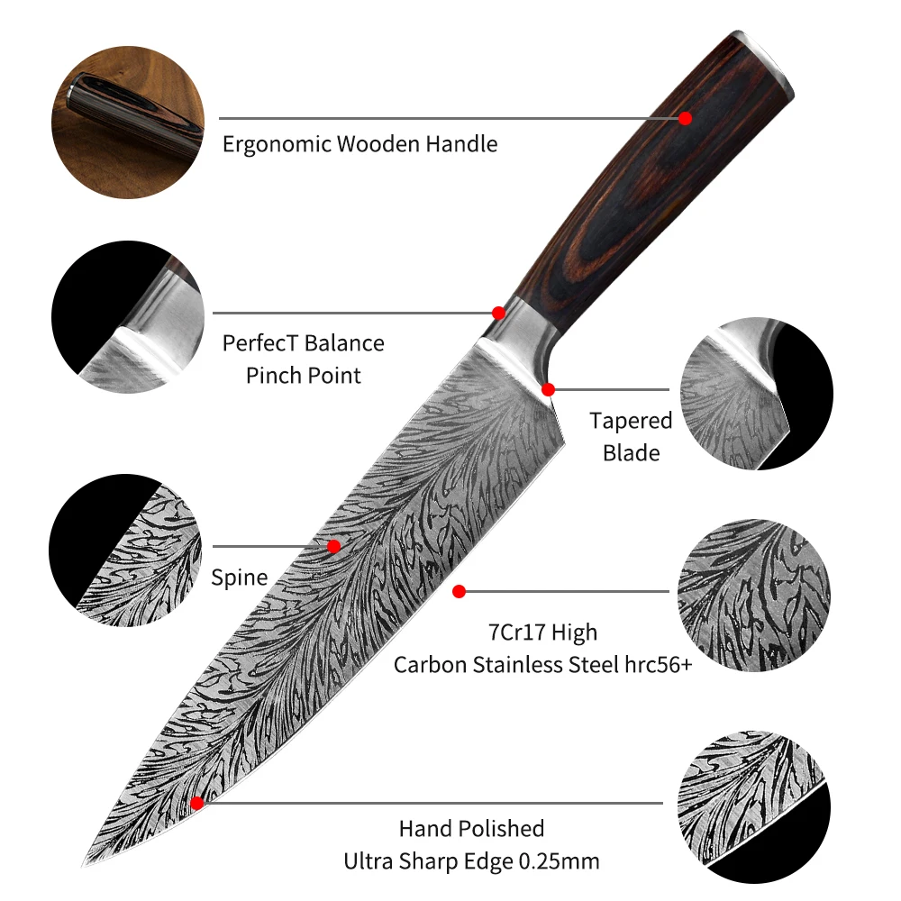 Нож gyutou классифицирован и предназначен для многоцелевого ножа для профессионального применения. Он режет, кубики, ломтики, отбивные, а также отрезает мясо от костей. Он поставляется с HRC (шкалой твердости Роквелла) 56-58, что делает его одним из жестких ножей в своем классе