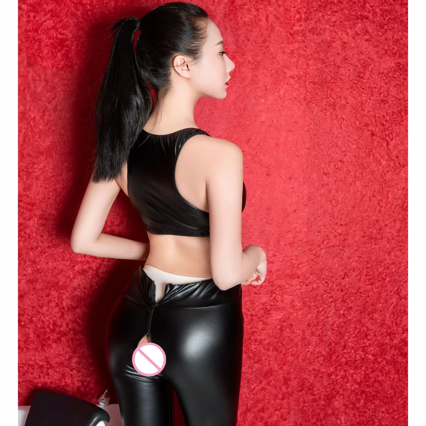 2 шт./компл., штаны с высокой талией, женские сексуальные черные леггинсы из искусственной кожи на молнии, фантастические экзотические Клубные леггинсы для фитнеса