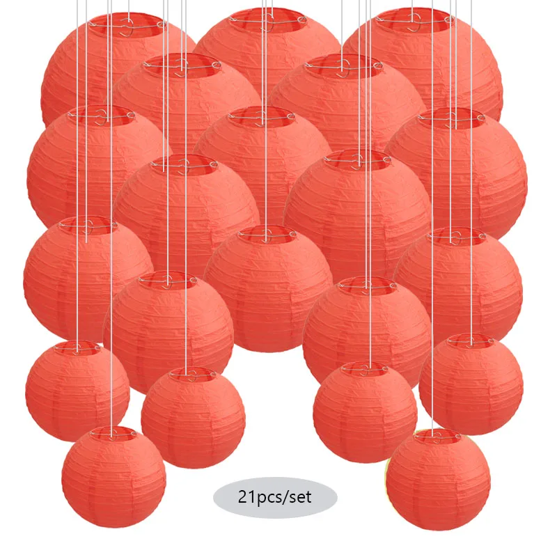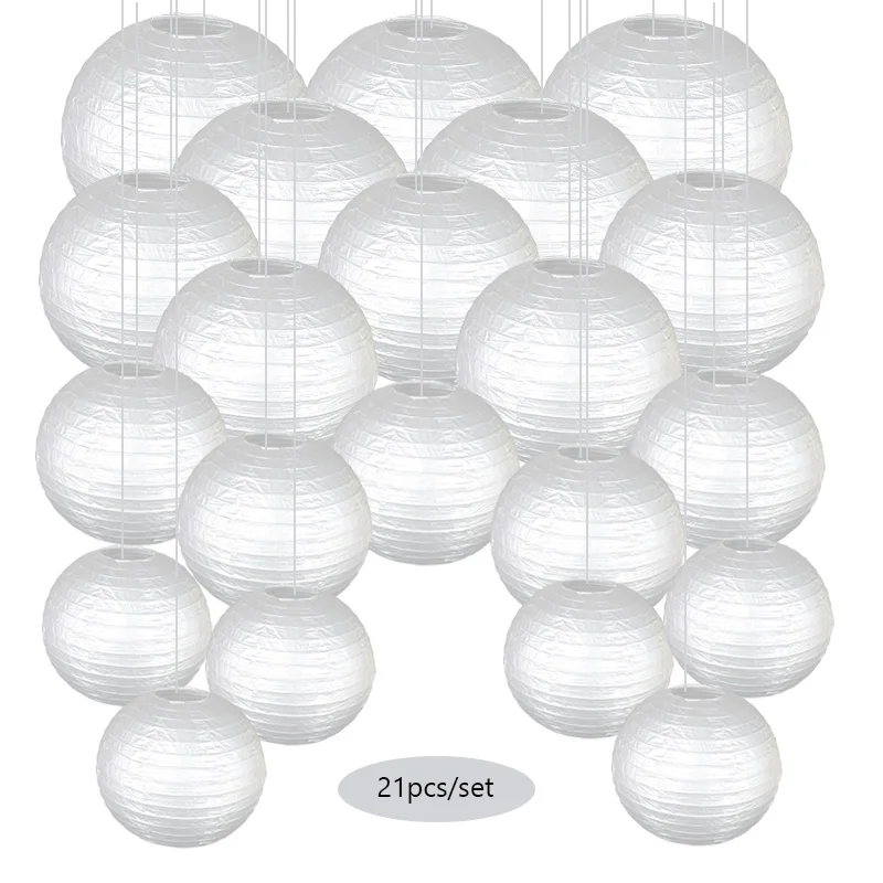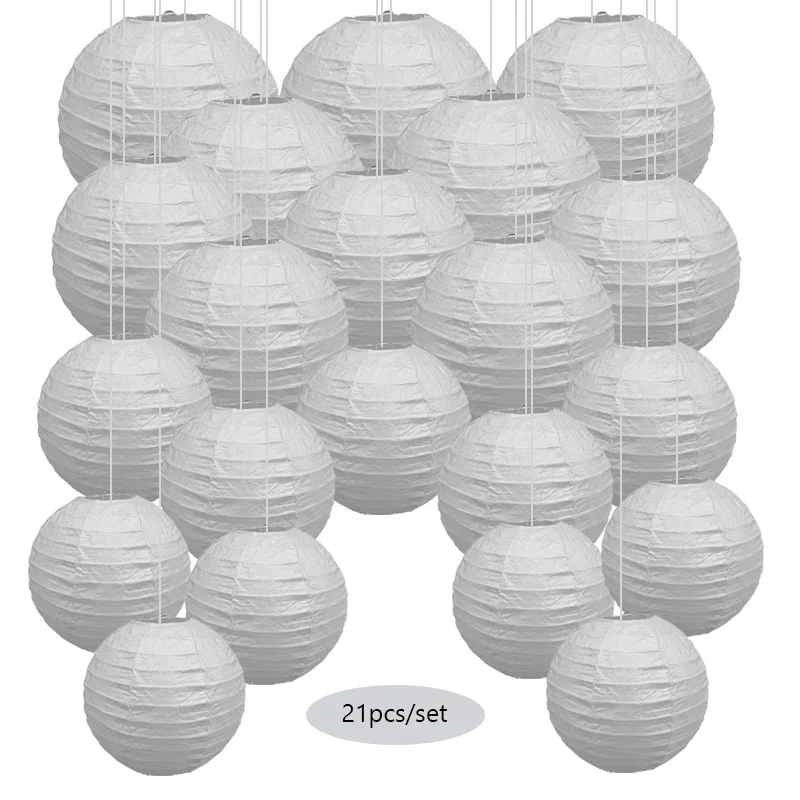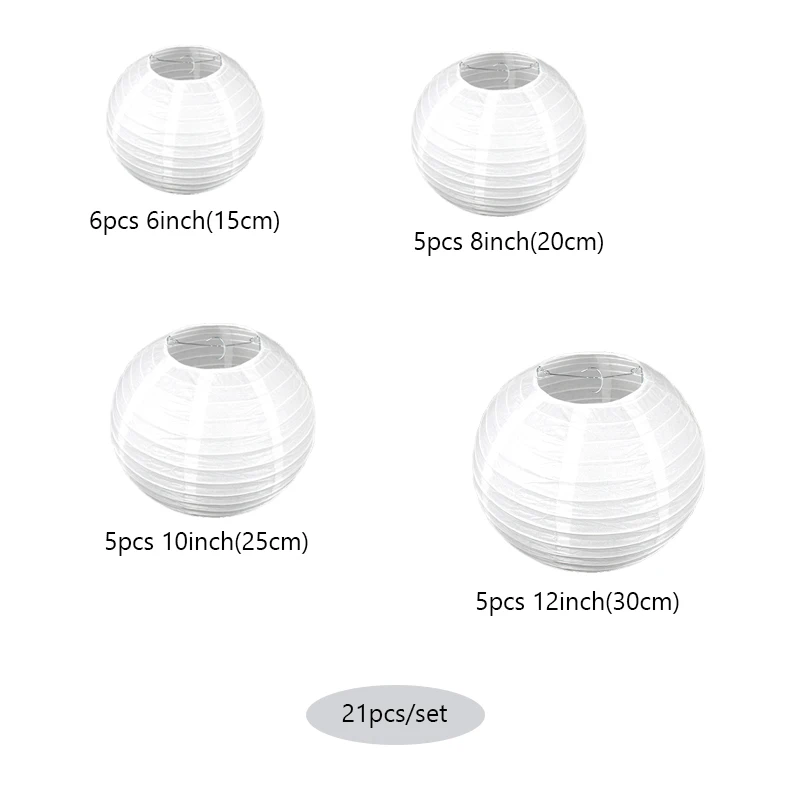Бумажные фонарики: 6 шт 6 дюймов (15 см) + 5 шт 8 дюймов (20 см) + 5 шт 10 дюймов (25 см) + 5 шт 12 дюймов (30 см).
