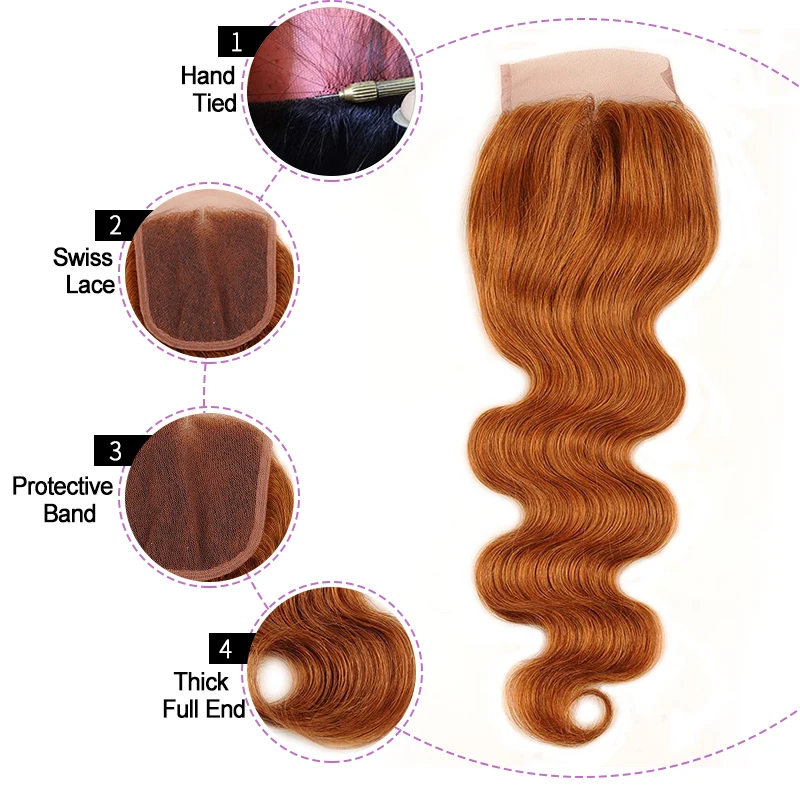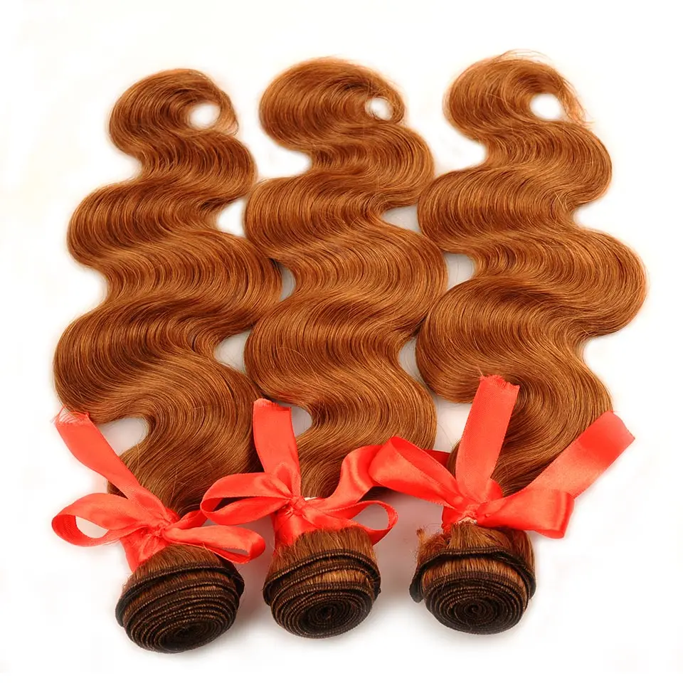 Бразильские медовые светлые волнистые пряди для тела с закрытием #30 натуральные кудрявые пучки волос пряди с кружевной застежкой Remy волосы Сияющие Звездные волосы