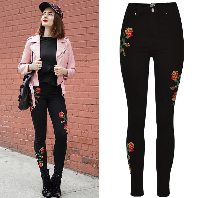 Женские джинсы с вышивкойМодный