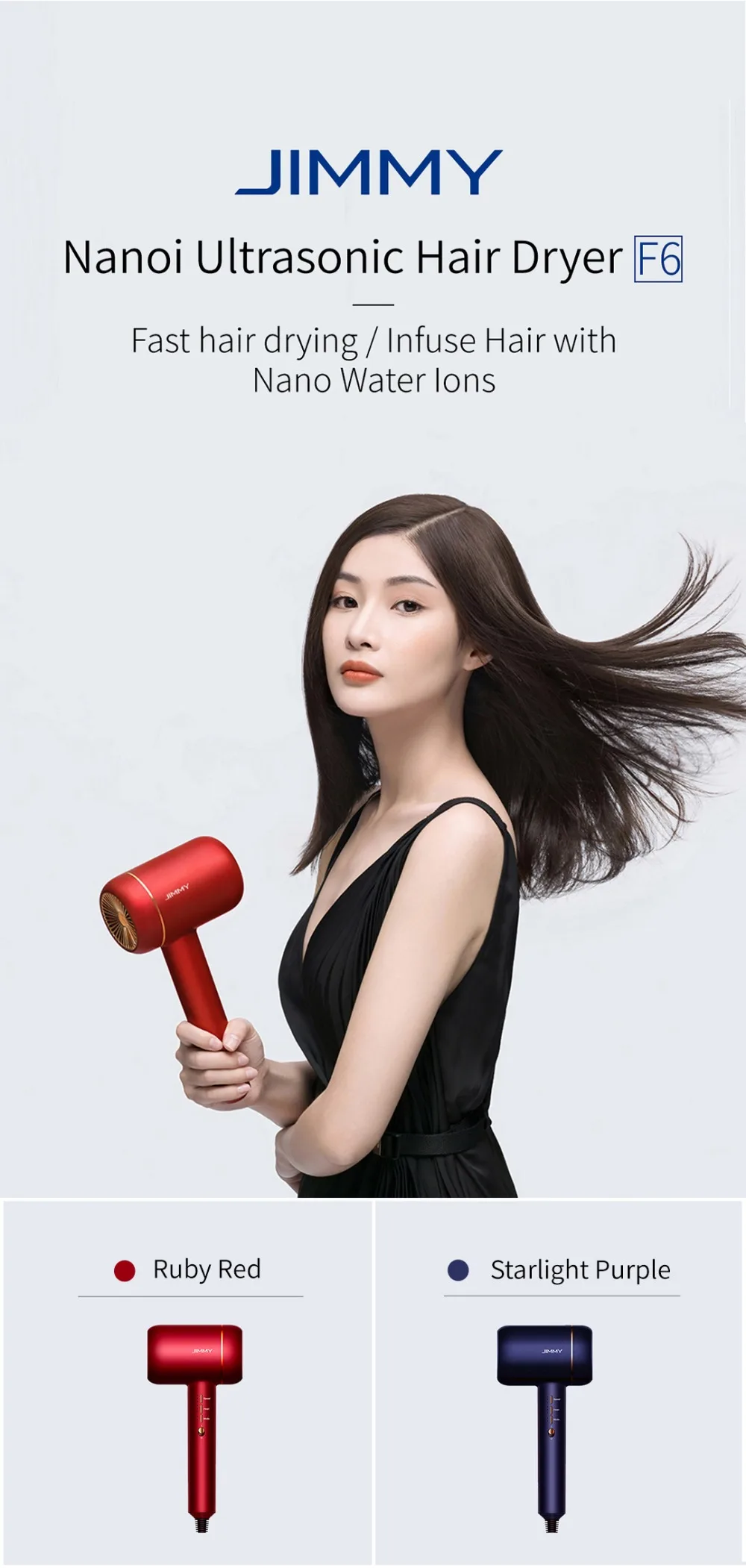 ОписаниеУльтразвуковой фен JIMMY Nanoi F6