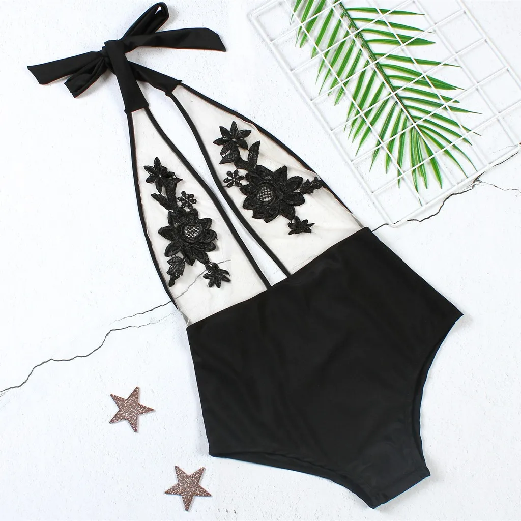 Женское цельное бикини Sexys, лоскутный сетчатый купальник с вышитыми розами, пляжная одежда