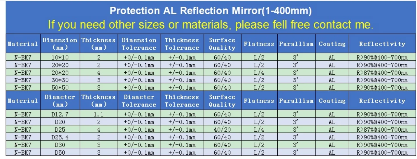 Оптическое металлическое внешнее отражение зеркальное покрытие зеркало AL N-BK7(H-K9L) Оптическое стекло защитный отражатель Al