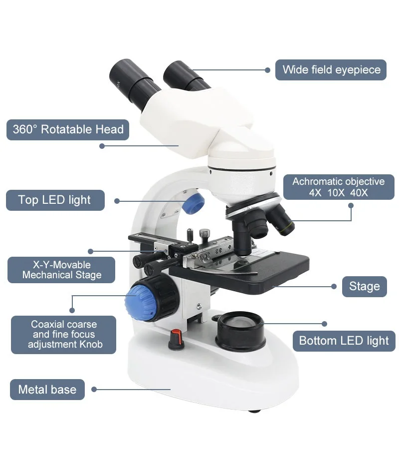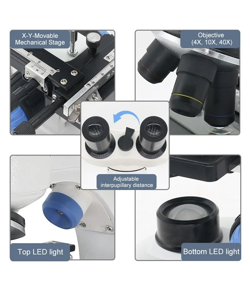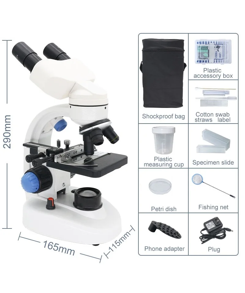2000X бинокулярный светодиодный микроскоп с подсветкой Биологический микроскоп образовательный студенческий научный эксперимент с зажимом для смартфона