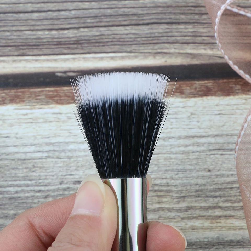 The makeup brush blends out foundation, blush,primer, and concealer. Use it with any liquid or cream formulas.