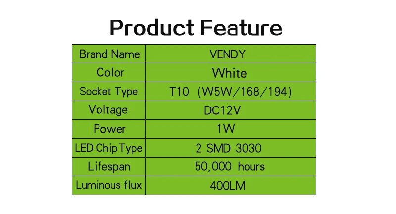 Посылка: 10 светодиодных ламп Описание товара: Подходит для большинства видов автомобилей. Совместимость с: 194,T10,W5W,168,2825 Подходит для зазора светильник, светильник для чтения, купольный светильник, карта светильник, номерной знак светильник, парковочные огни светильник s Характеристика: 1. Название бренда: VENDY 2. Неполярность 3. Светодиодный Тип чипа: 2 SMD 3030 4. Светодиодный Цвет: белый 5. Тип разъема: T10,W5W, 194168, 2825 6. Напряжение: 9-18 в постоянного тока 7. Мощность: 1 Вт 8. Световой поток: 400 лм 9. Срок службы: 50000 часов Светодиодный светильник заменит галогенную стеклянную лампу на складе 10. Гарантия: 3 года Низкая температура, низкое энергопотребление Добавьте стиль и украсьте свой автомобиль. Супер яркие светодиоды намного ярче, чем оригинальные лампы накаливания. Легко устанавливается за считанные минуты-никаких инструментов не требуется.