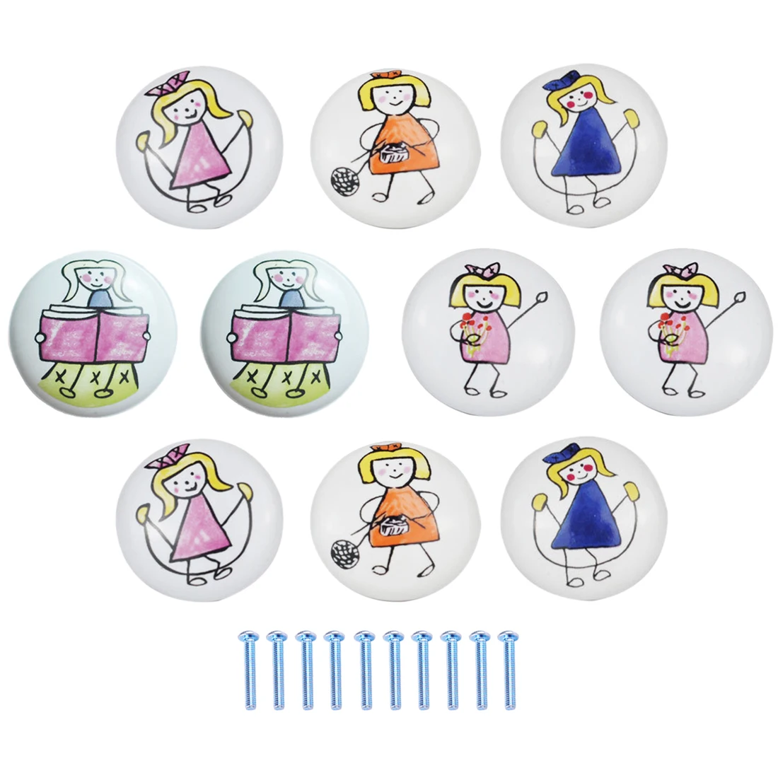 10 шт. мультяшная круглая дверная ручка с одним отверстием для девочки, керамическая дверная ручка для шкафа, выдвижная ручка для шкафа, кухонный шкаф для двери