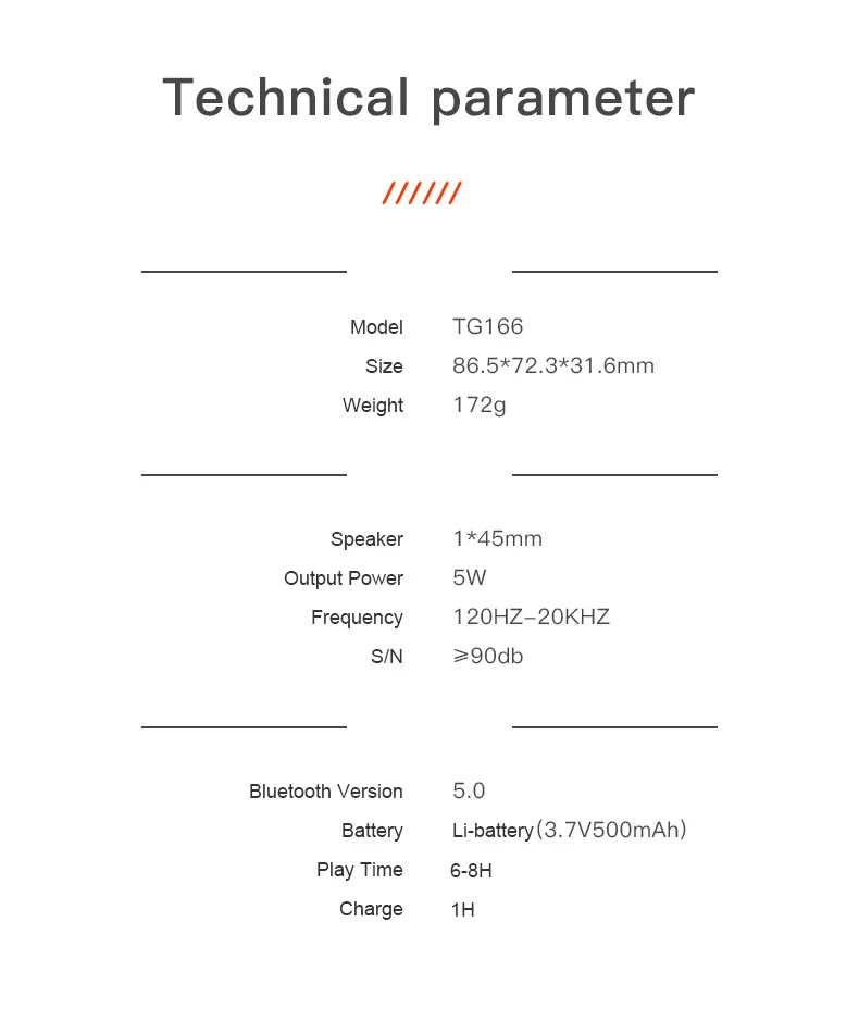 Adopting advanced wireless audio decoder chip для поддержки подключения всех беспроводных устройств. Поддержка fm-радио, он может осуществлять поиск радиостанций в области прослушивания напрямую. Тон мягкий, четкий и динамичный, с четкими уровнями. Поддерживает чтение tf-карты и u-диска, которые не входят в комплект. Беспроводное расстояние приема до 10 метров. Автоматическое отключение, если подключение не будет в течение получаса. Легкий и компактный, портативный для пеших прогулок, велоспорта, кемпинга и т. д.