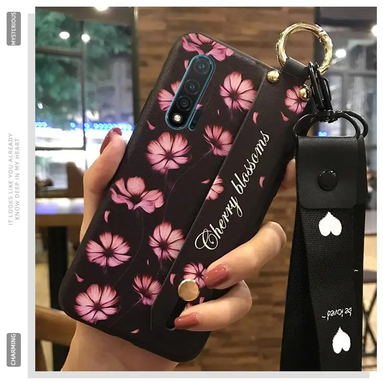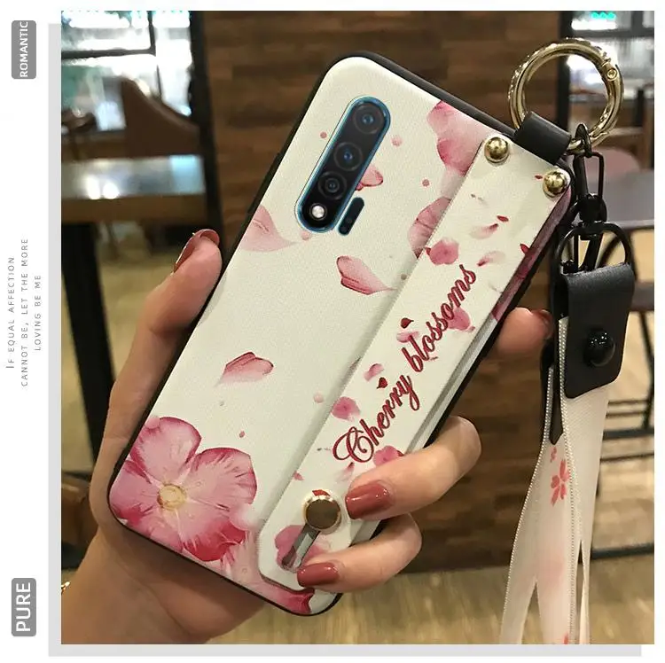 Waterproof Wrist Strap Phone Case For Huawei NOVA6 4G Wristband Dirt-resistant Anti-dust Shockproof Cover Silicone Flower Series