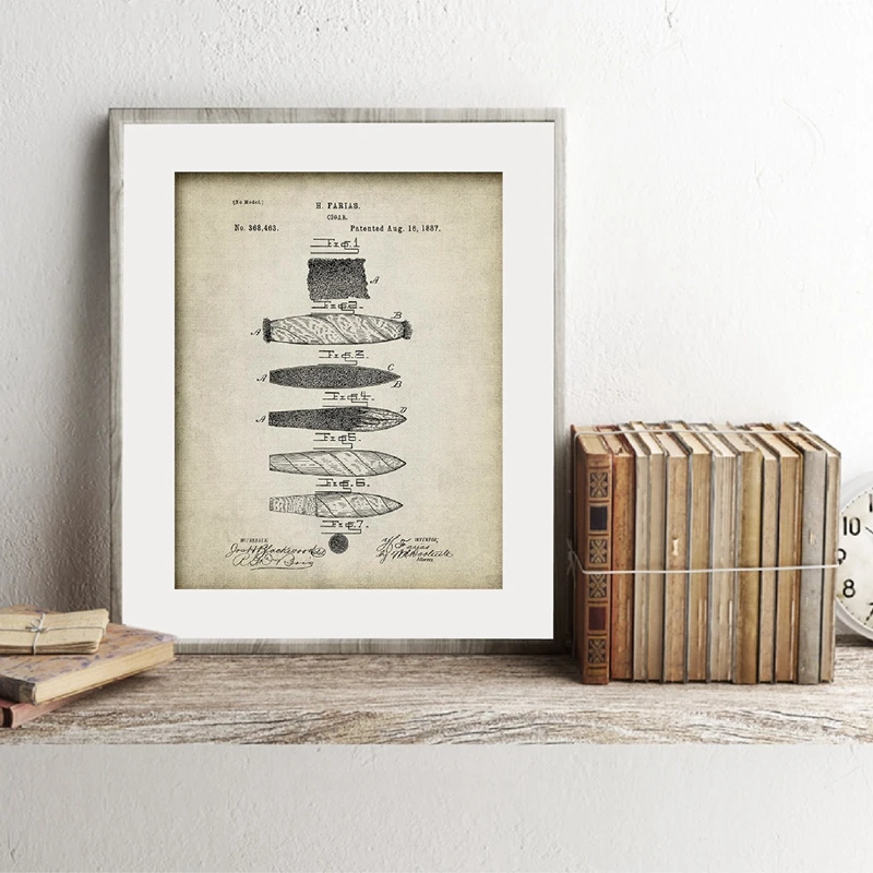 Запатентованные принты сигар · фарисы · 1887 постер курильщик Подарок винтажный табак художественная картина фарисы патент Холст Картина домашний декор сигары