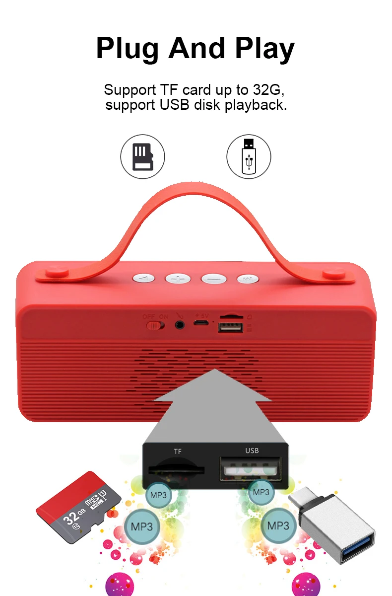 Bluetooth-беспроводное подключение к смартфонам или планшетам к bluetooth-динамику и включение мощного стереозвука. Тип батареи: литий-ионный полимер емкостью 1200 мАч 3 ~ 5 часов воспроизведения (зависит от уровня громкости и содержания) Сделайте кристально чистые звонки с вашего HIFI динамика Стильная полосатая колонка с песочными часами, уникальный и модный стиль Портативный дизайн с подвесной полоской, идеально подходит для улицы, дома, путешествий и автомобиля Поддержка функции FM, этот динамик может помочь yo seacrh радиостанции Поддерживает sd-карту Mico, этот bluetooth-динамик не только bluetooth-динамик, но и MP3-плеер С подключения к разъему AUX, этот динамик может быть подключен с ТВ, компьютеров, ноутбуков, Планшеты, все виды мобильных телефонов, которые имеют 3,5 мм аудио Порты и разъёмы Встроенная интеллектуальная энергосберегающая система, этот bluetooth-динамик автоматически выключается, если disconnenct в режиме Bluetooth Одним словом, это не только громкоговоритель Blutooth, но и идеальный громкоговоритель desivce, а также mp3-плеер, fm-радио и проводной динамик;