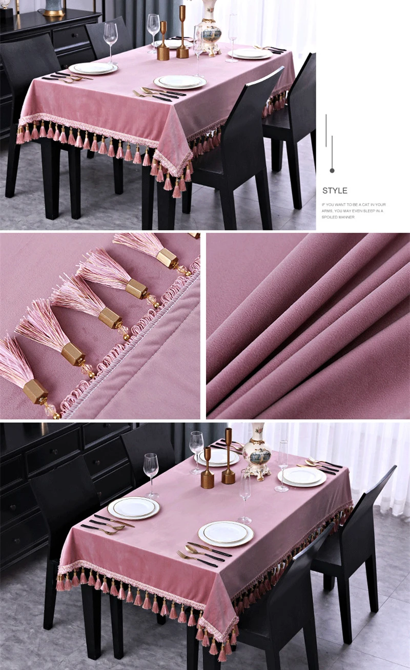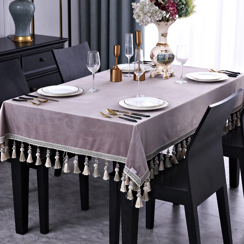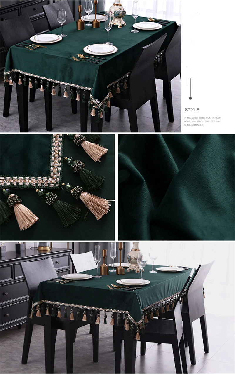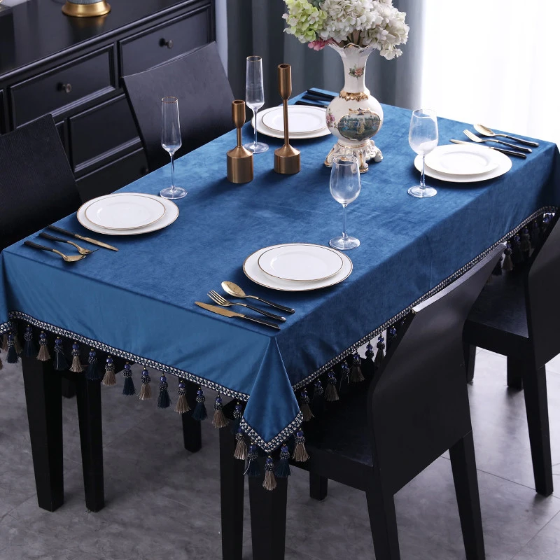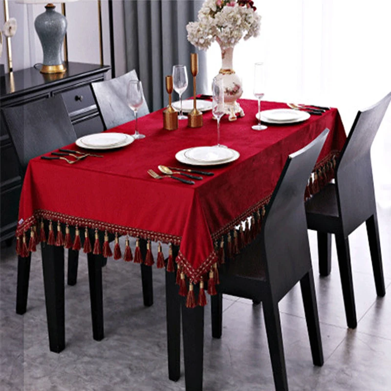 Luxury Small/Big Square Table Cloth Cover Noble Solid Velvet Rectangle Elegant Tablecloths Dustcloth Tablecloth Tassel Tapete