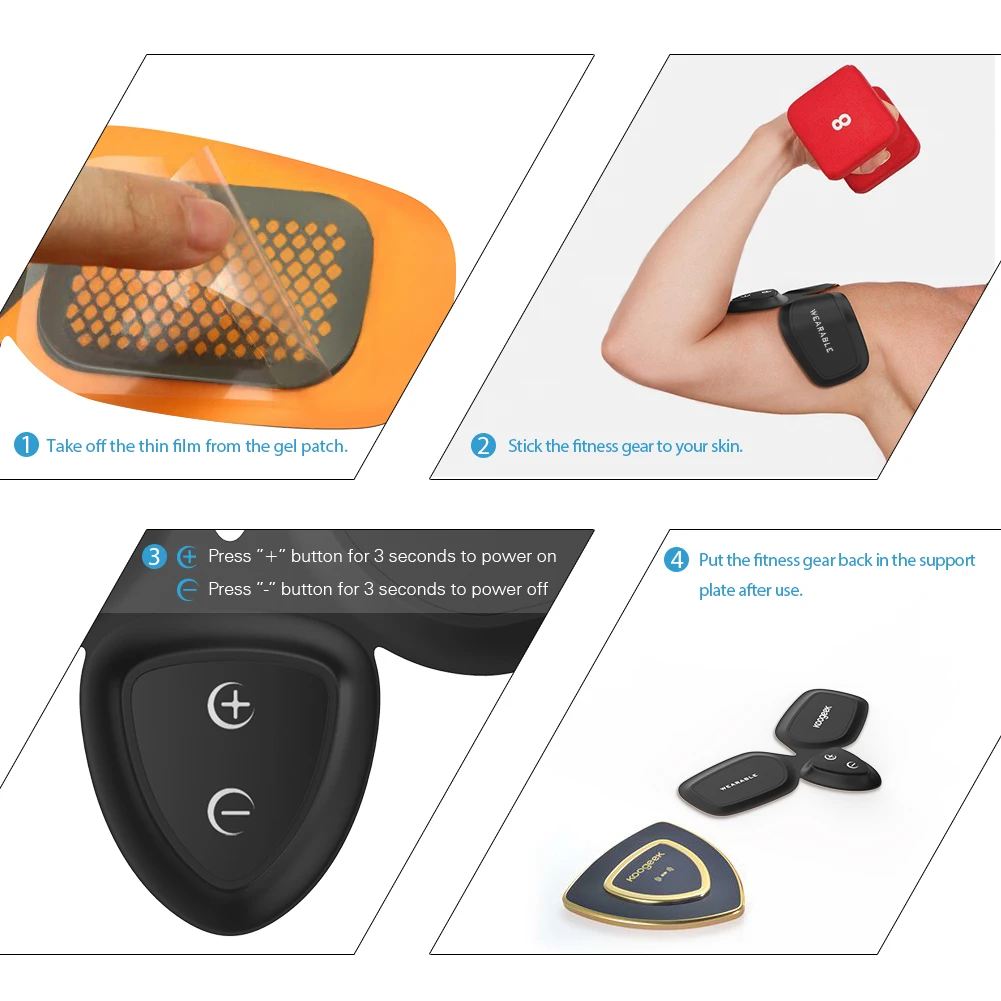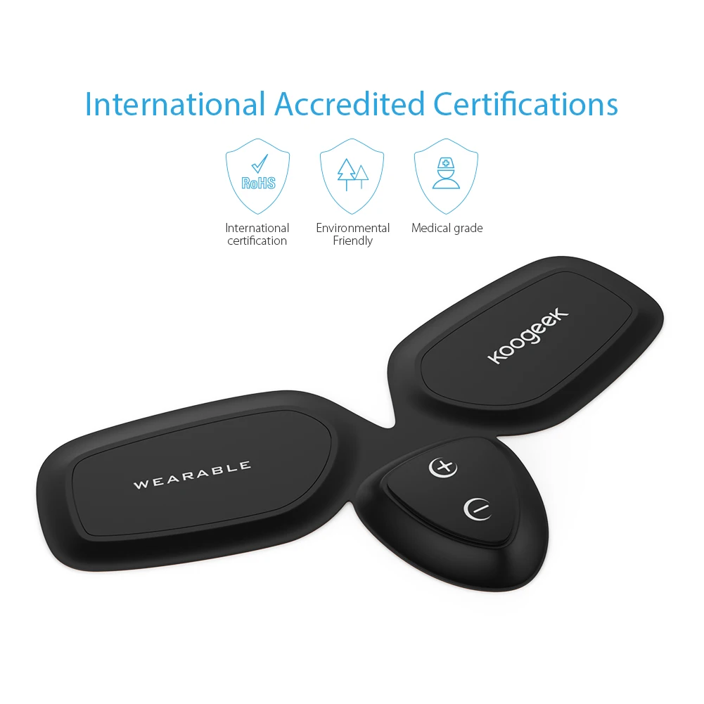 Приложение Koogeek развивает несколько режимов фитнеса, включая воспроизведение музыки, сжигание жира, расслабление и режим упражнений. Прилагаемые медицинские гелевые пластыри прошли тест биосовместимости человека и получили международную сертификацию.