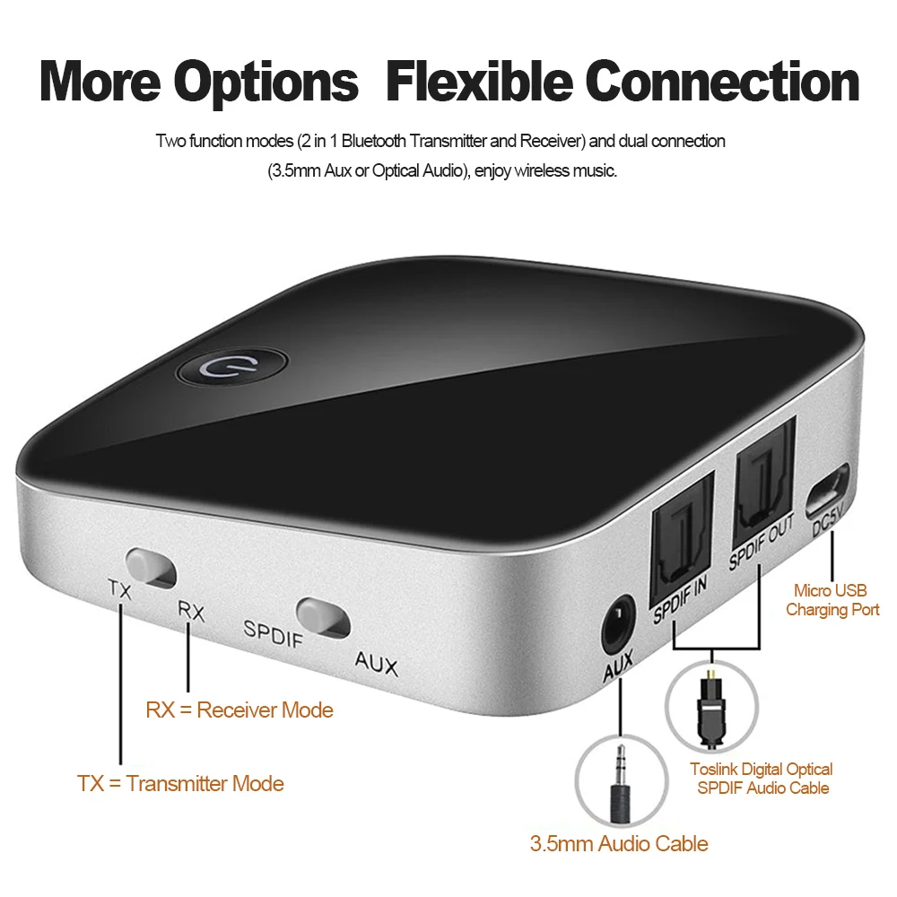 [Режим передачи]BTI-029 Bluetooth передатчик может быть подключен к аудиоустройствам (например, MP3, MP4, ТВ и ПК и т. д.) без функции Bluetooth с помощью прилагаемого 3,5 мм аудио кабель или Оптический Кабель Toslink, И позволяет работать с bluetooth-гарнитурой и динамиком.