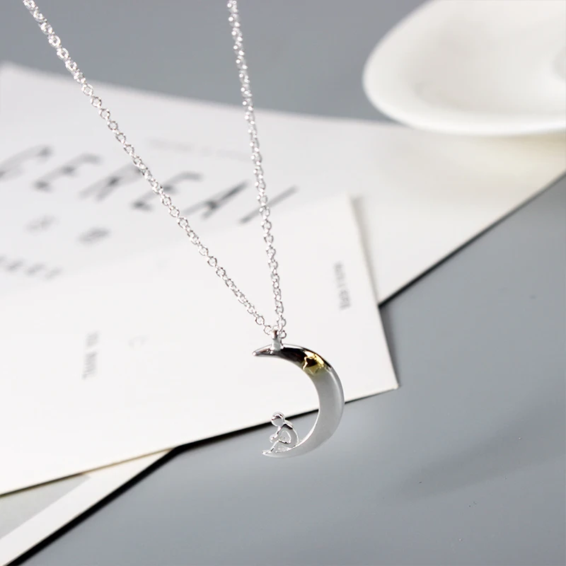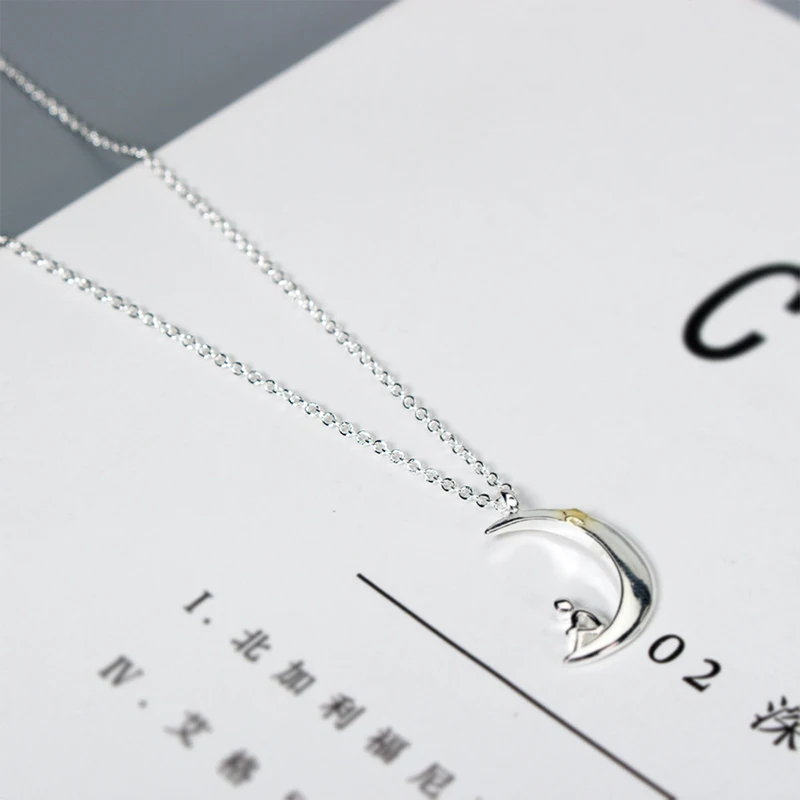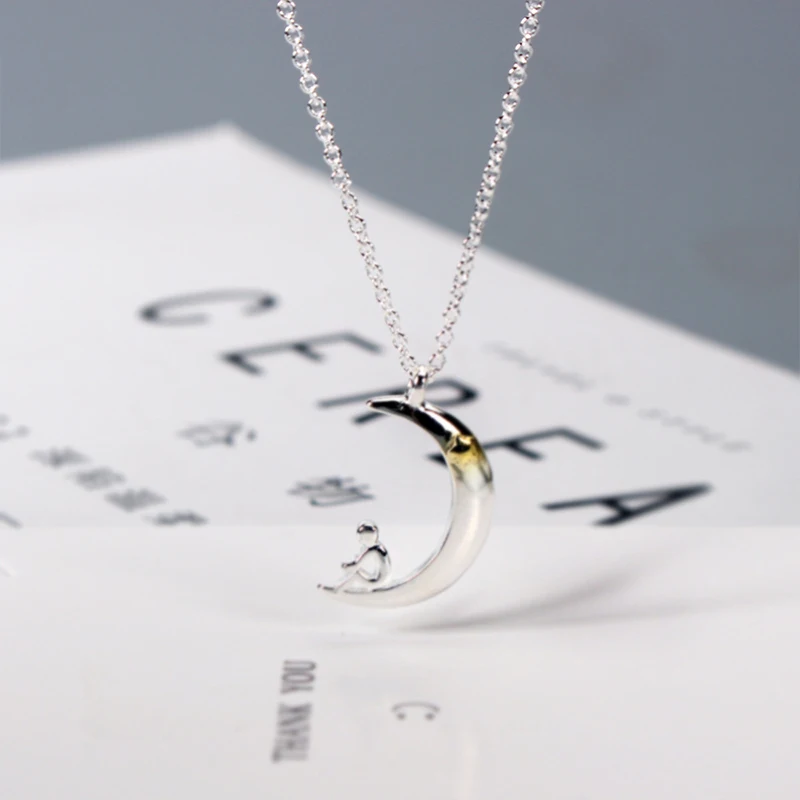 Название: модное ожерелье из стерлингового серебра 925 пробы подвеска Звезда Луна Материал:Серебро 925 пробы Цвет: серебристый Размер: 40 см + 5 см Вес: 5g
