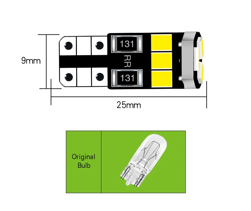 Package:10pcs led bulbs Product Description: Suitable for most kinds of cars . Compatible with:194,T10,W5W,168,2825 Fit for Clearance Light,Reading light,Dome light,Map light,License plate light,Parking Lights Feature: 1.Brand Name:VENDY 2.LED Chip Type:9 SMD 2835 Chip 3.LED colour: White 4.Socket type: T10,W5W,194,168,2825 5.Voltage:DC 9-18V 6.Power:1.5W 7.Luminous flux:500LM 8.Lifespan: 50000 hours This item LED bulb will replace the stock halogen glass bulb 9.Warranty:3 Years Low temperature, low power consumption Add style and brighten your vehicle. Super bright LEDs are much brighter than original incandescent bulbs. Installs easily in just minutes - no tools needed.