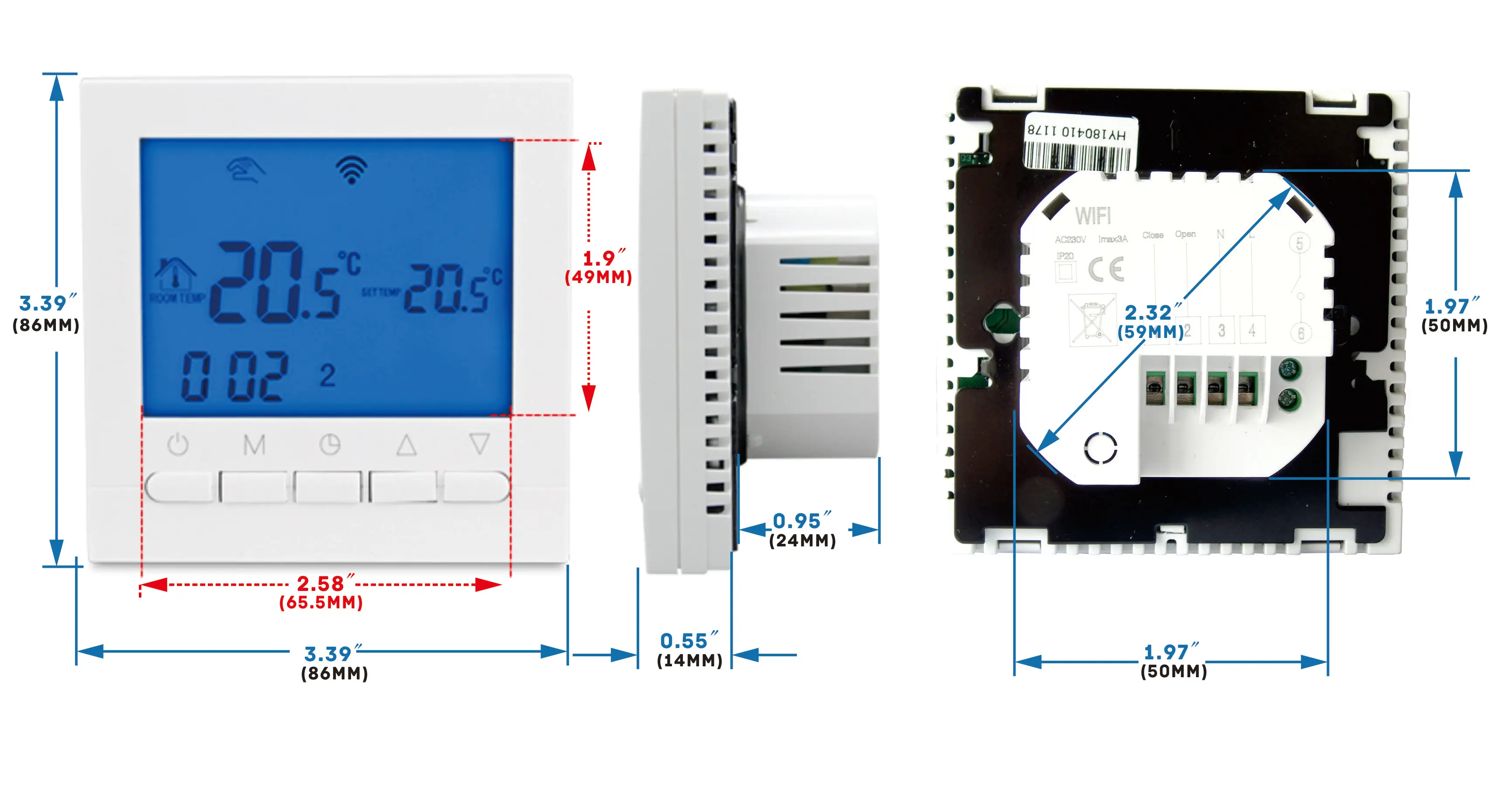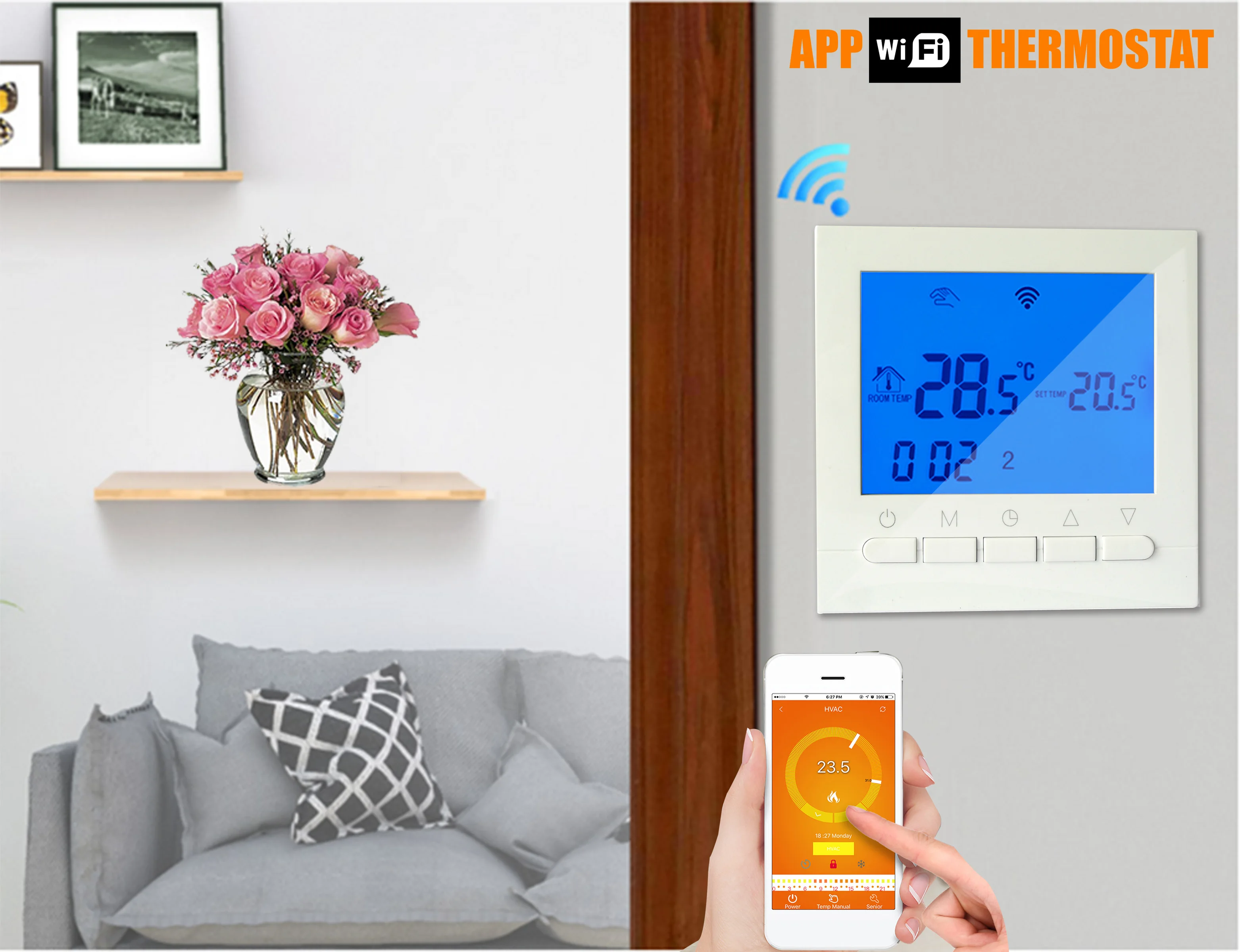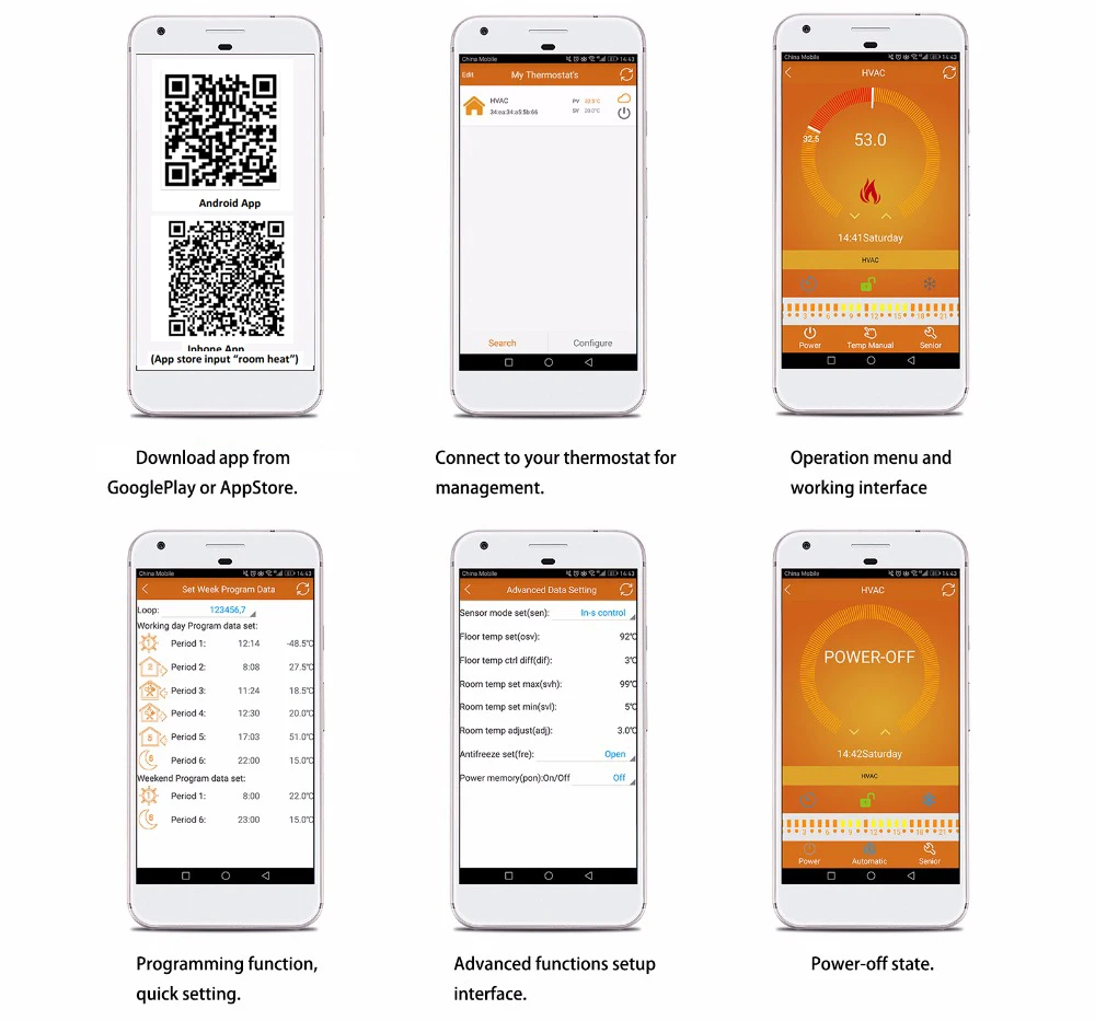 Использование: термостат Thist wifi может использоваться для управления газовым котлом, клапаном и тепловым приводом. Этот термостат подойдет Вам, если в вашем доме используется система нагрева воды. Управление Wifi s: управление отопительным оборудованием через телефон. Вы можете установить температуру вашего дома в любом месте. Зеленые продукты и энергосбережение: Установите в программируемом режиме, экономя энергию, когда вы не дома. Особенности: Большой сенсорный ЖК-экран с синим дисплеем с подсветкой и двойным режимом отображения температуры Отображение времени (минуты, часы, недели) 6 период регистрации контроля температуры Комнатной температуре-0,5, внутренняя точность-0,1 Настройка Температуры соответствует требованию пользователя комнатной температуры Функция автоматической калибровки комнатной температуры После первого подключения ваш телефон может напрямую управлять устройством в любом месте, удобно и практично (опционально) Технические данные: Источник питания: AC200-240V В переменного тока, 50/60 Гц Ток холостого хода: 3A Точность: ± 0,5 °C Комплект Temp. : 5 ~ 99 градусов Цельсия (заводской по умолчанию: 5 ~ 35 градусов Цельсия) Потребляемая мощность: <0,3 W Температура Сенсор: NTC Размер: 86*86*17 мм (В * Ш * Г) Датчик: сопротивление 10K Материал: Огнестойкий Поликарбонат ABS Размер дисплея: 63 мм * 48 мм