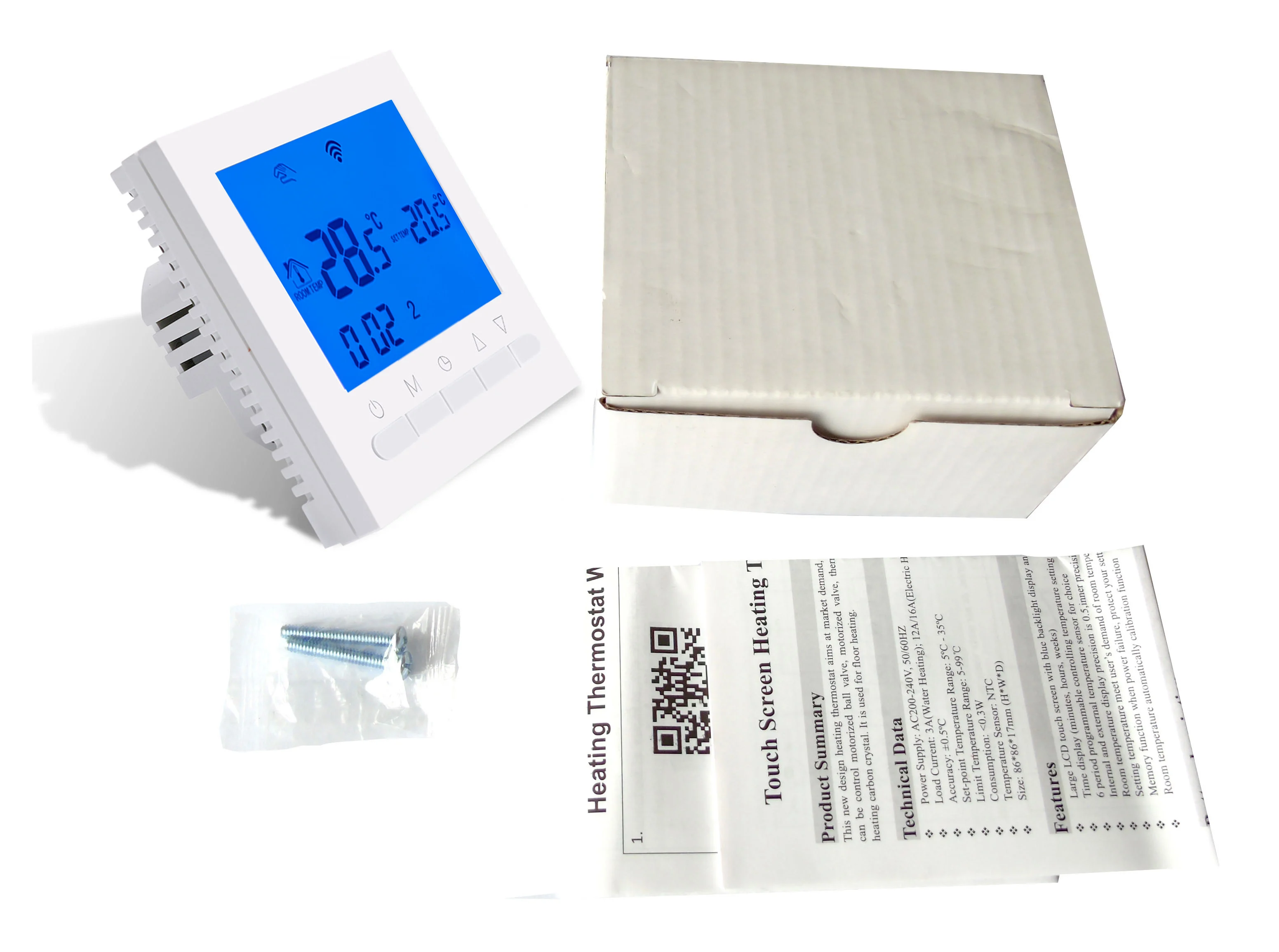 1 * термостат 2 * крепежные винты 1 * Руководство пользователя для термостата (на английском языке)