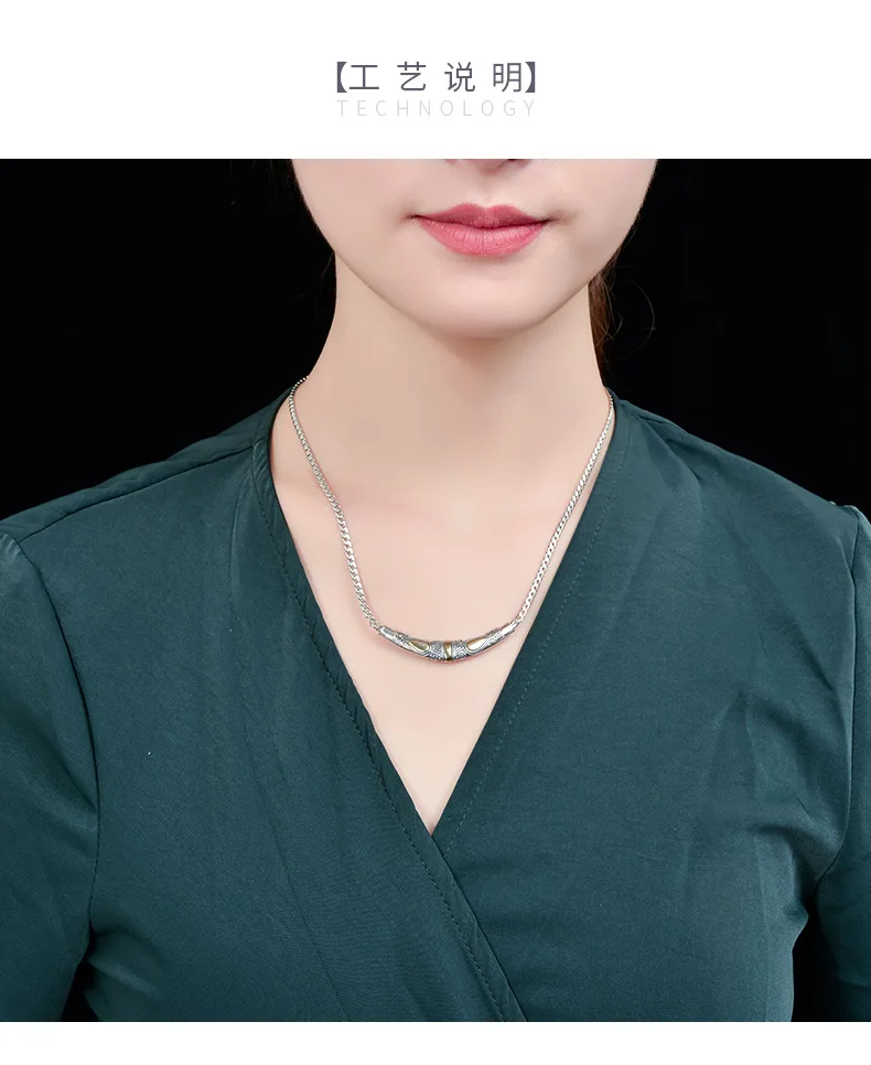 S925 Серебряный кулон с дизайном «полумесяц» с геометрической цепью ключицы