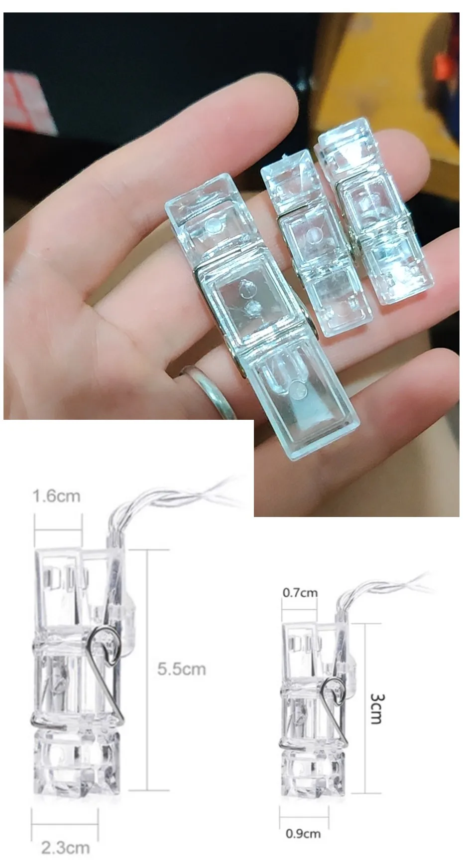 Пластиковые прозрачные прищепки для «сделай сам светодиодный ная гирлянда, украшение Вечерние