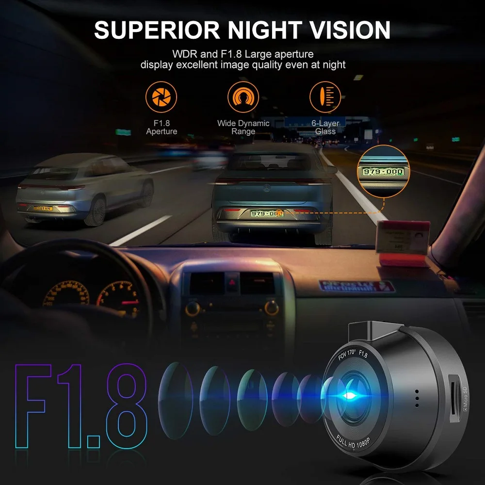Оснащен несколькими функциями, такими как парковочный монитор, g-сенсор, Аварийная запись, обнаружение движения, ночное видение и циклическая запись