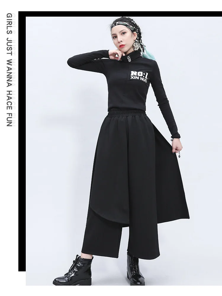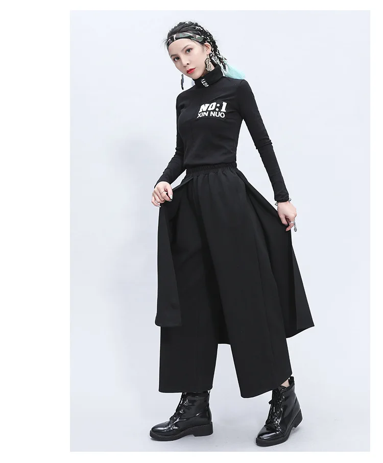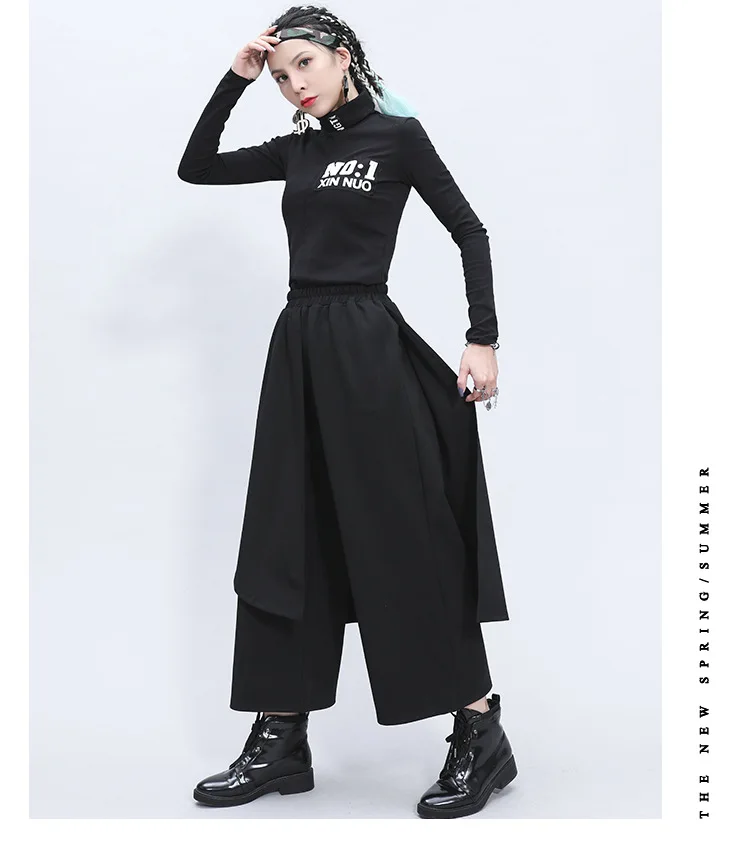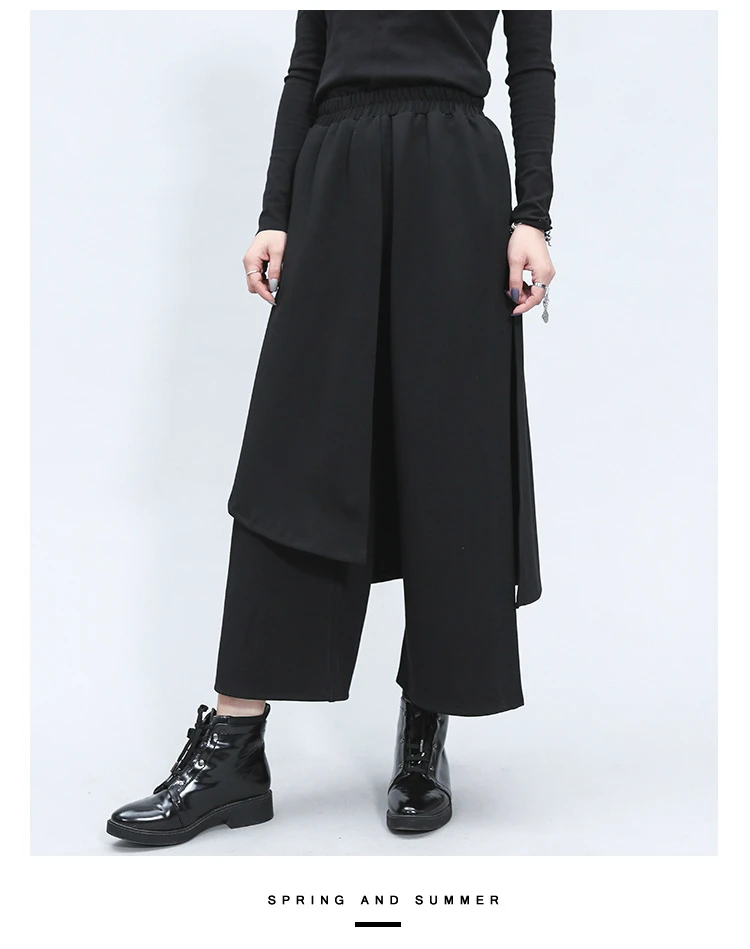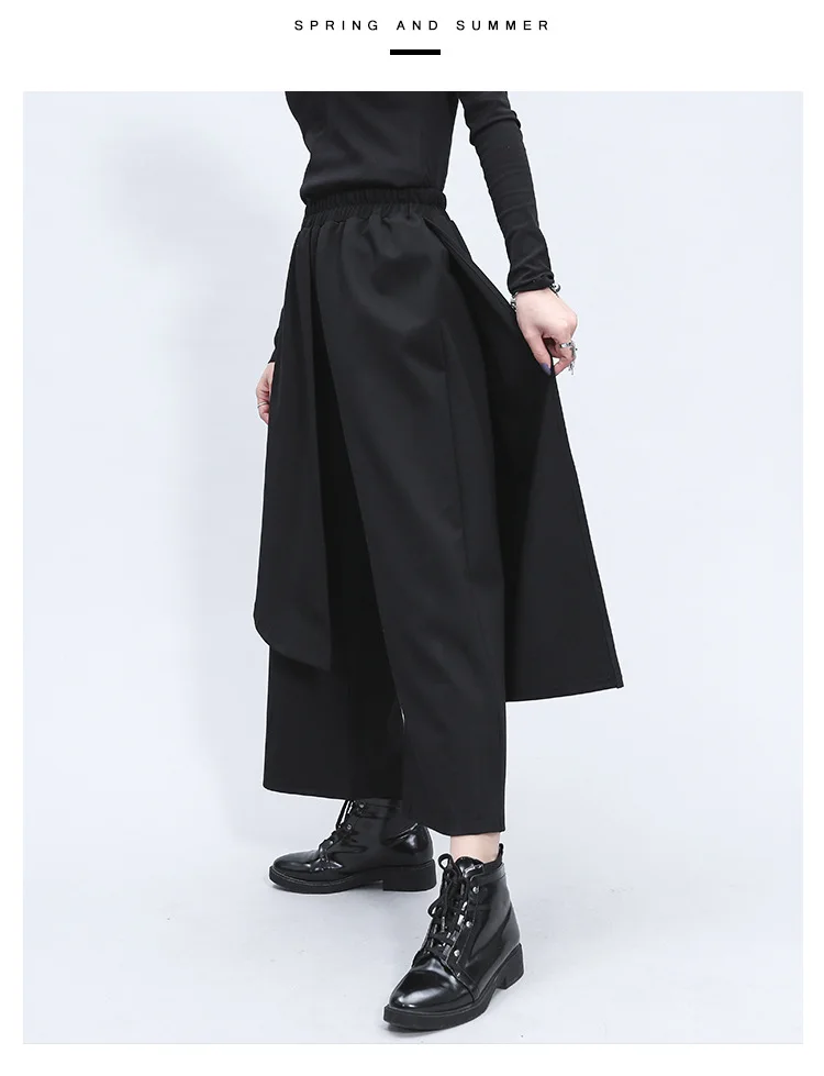 Поддельные два предмета Нерегулярные эластичный пояс свободные широкие брюки женские прямые брюки юбка-брюки девятая Длина Женская мода Размеры Единица измерения: сантиметр (см)