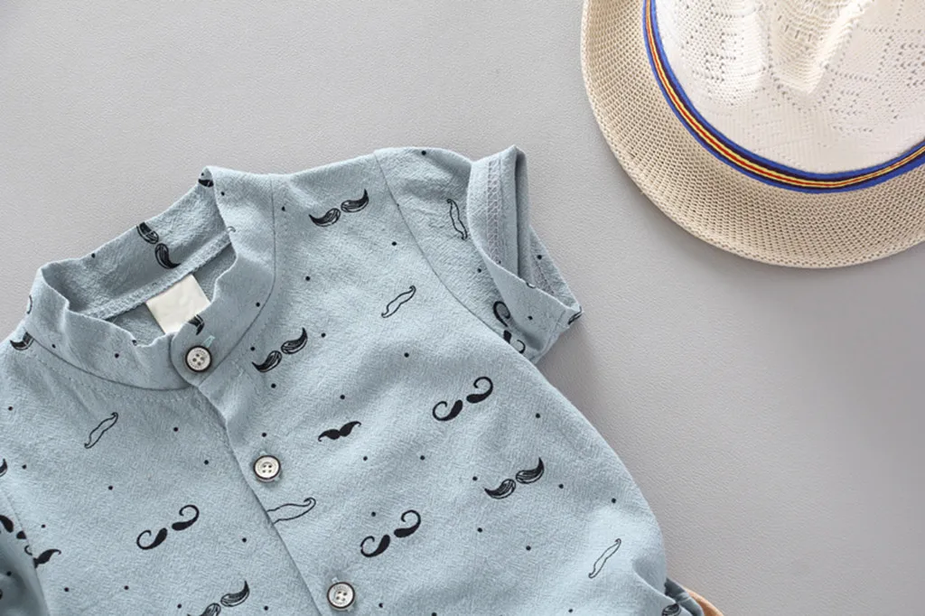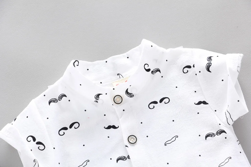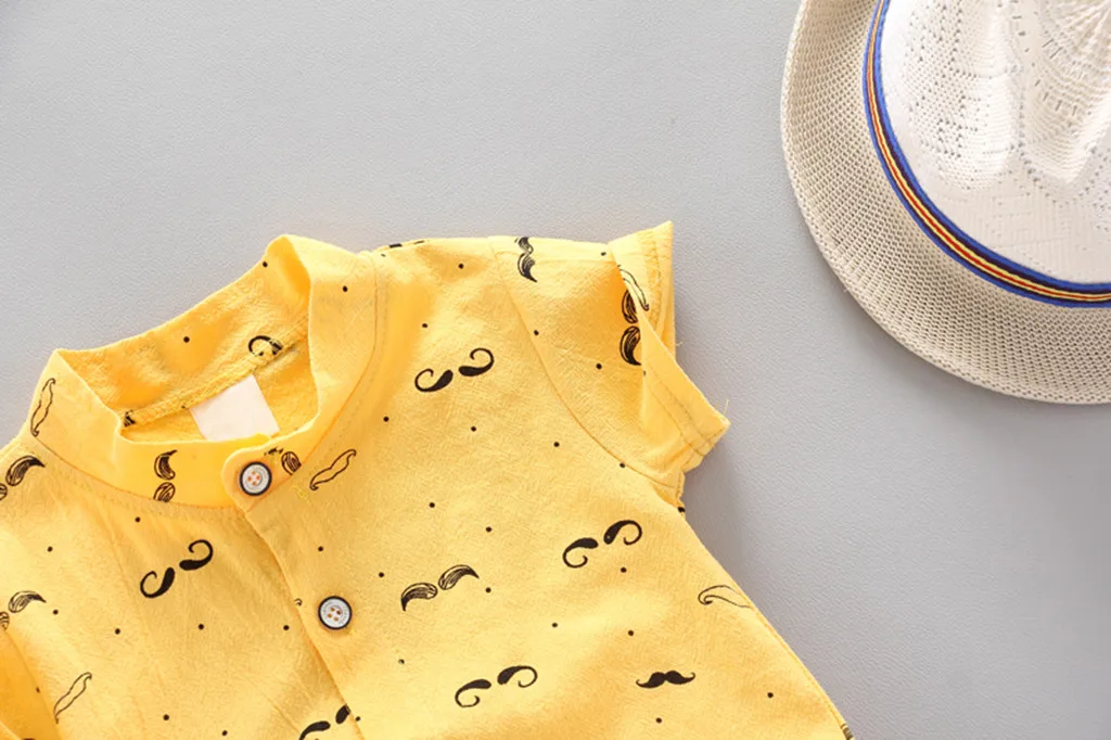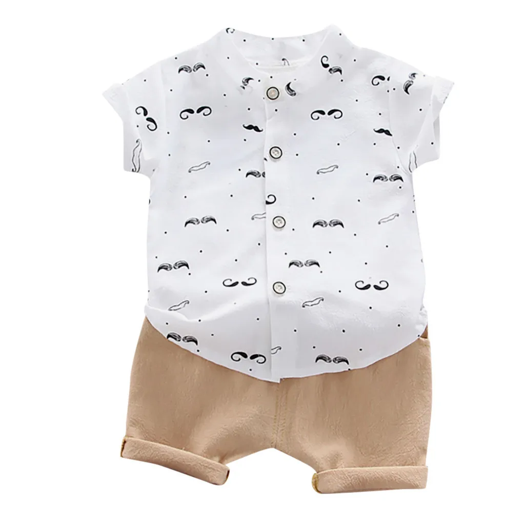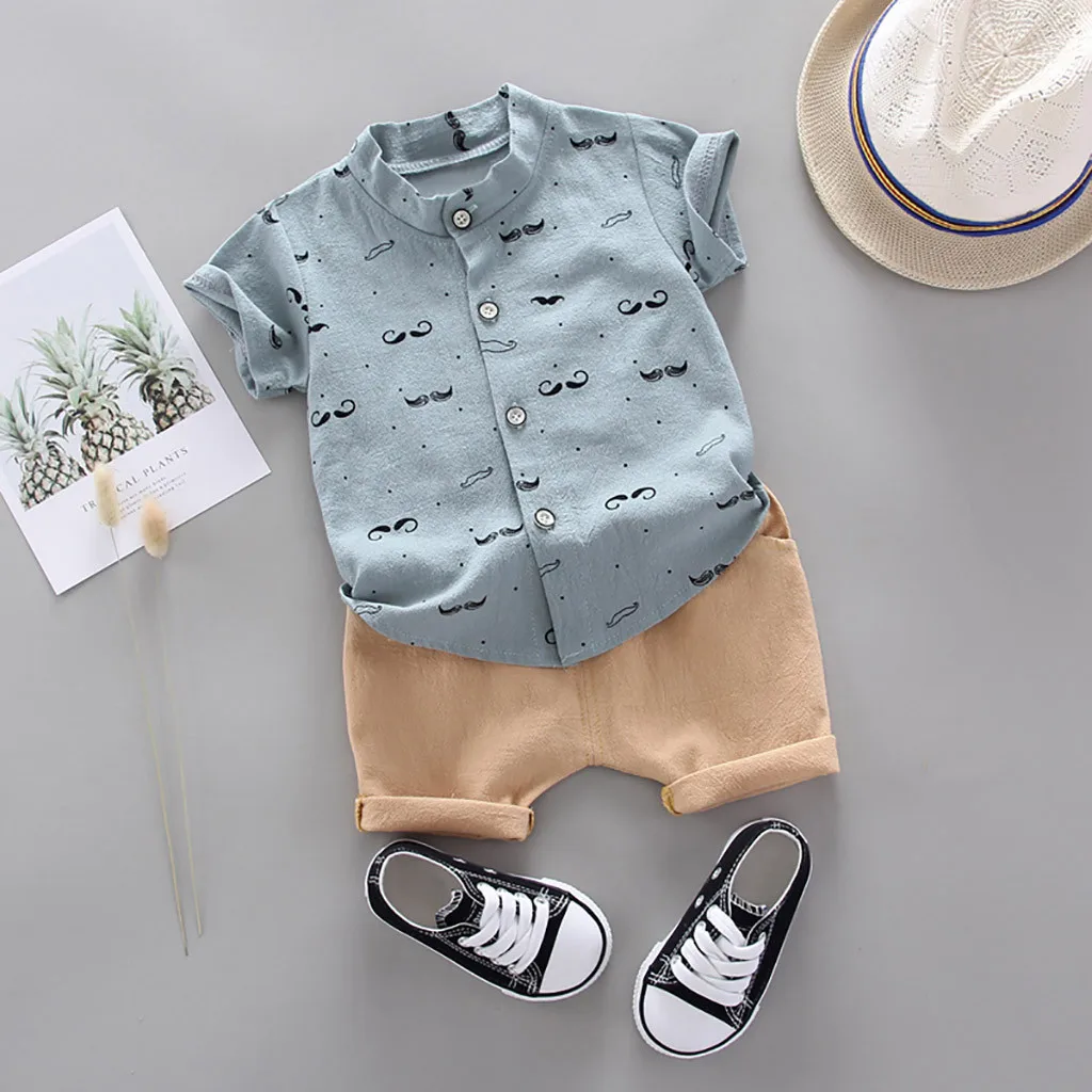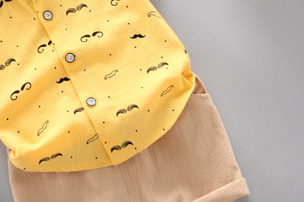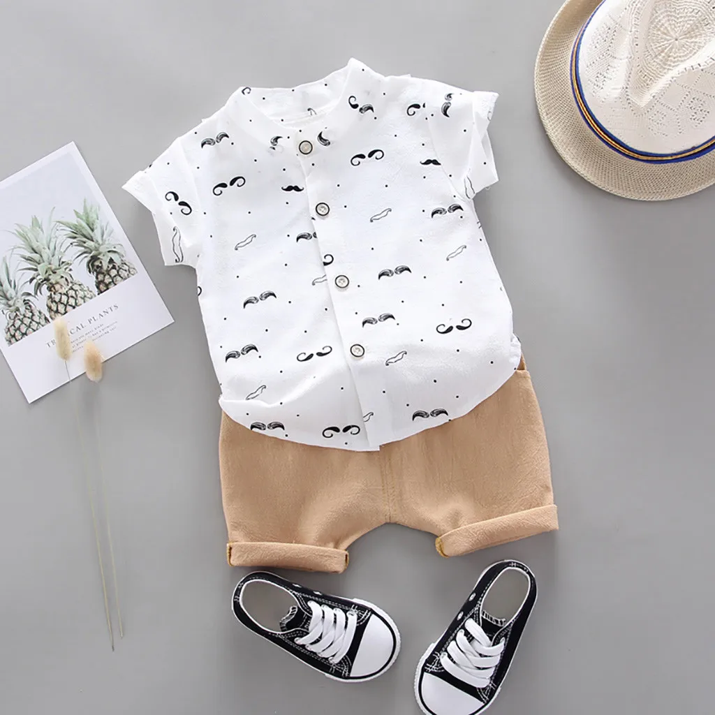 Футболка с принтом для маленьких мальчиков; топы; однотонные шорты; брюки; комплект для джентльмена