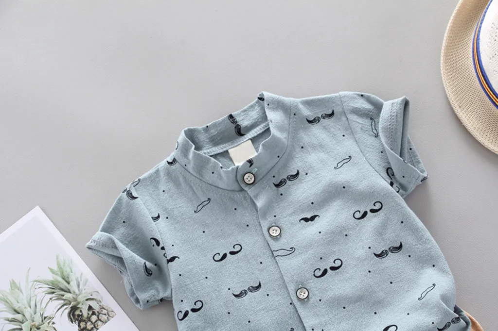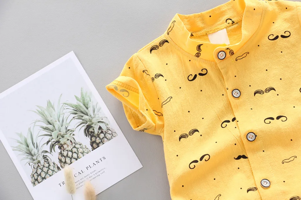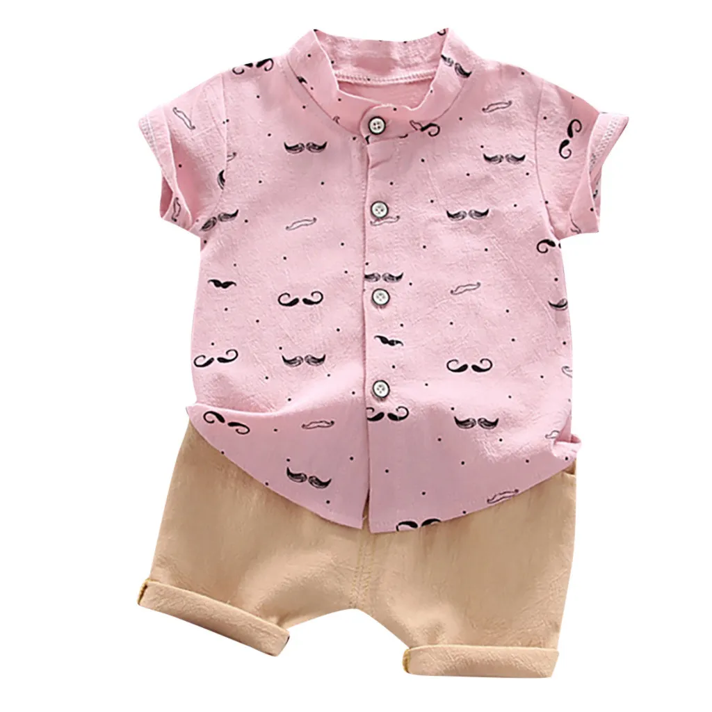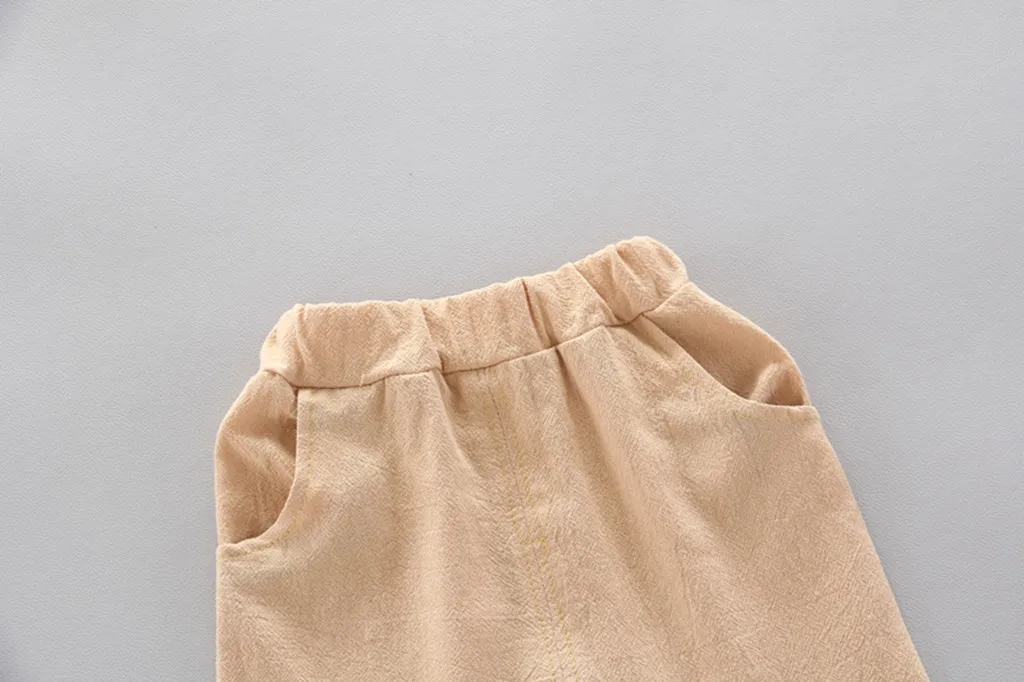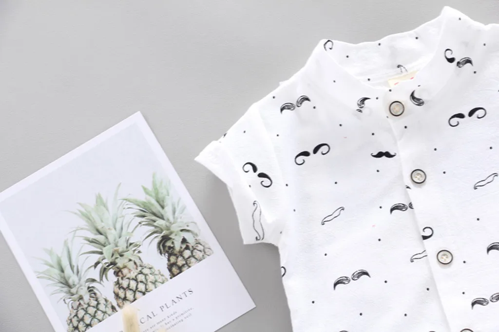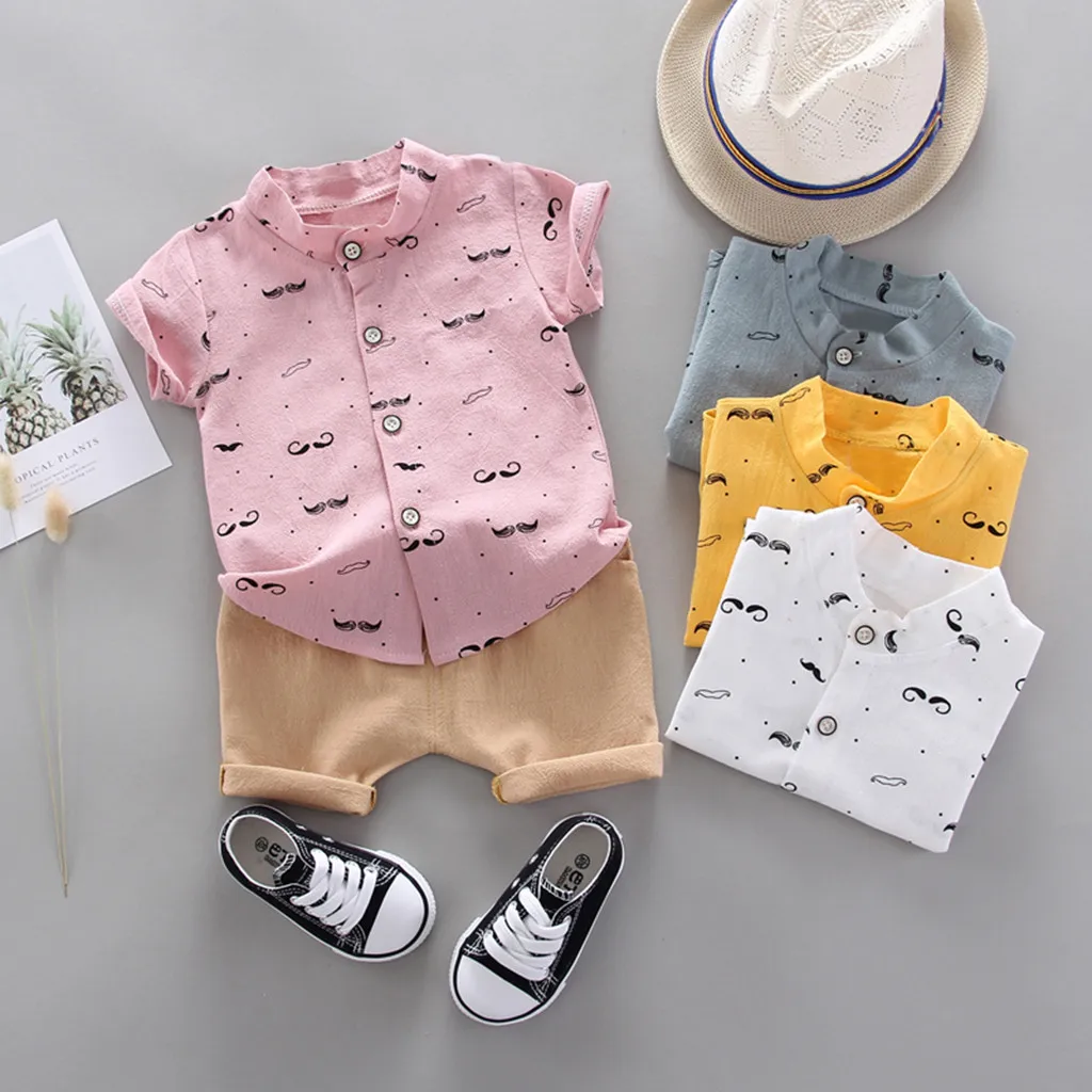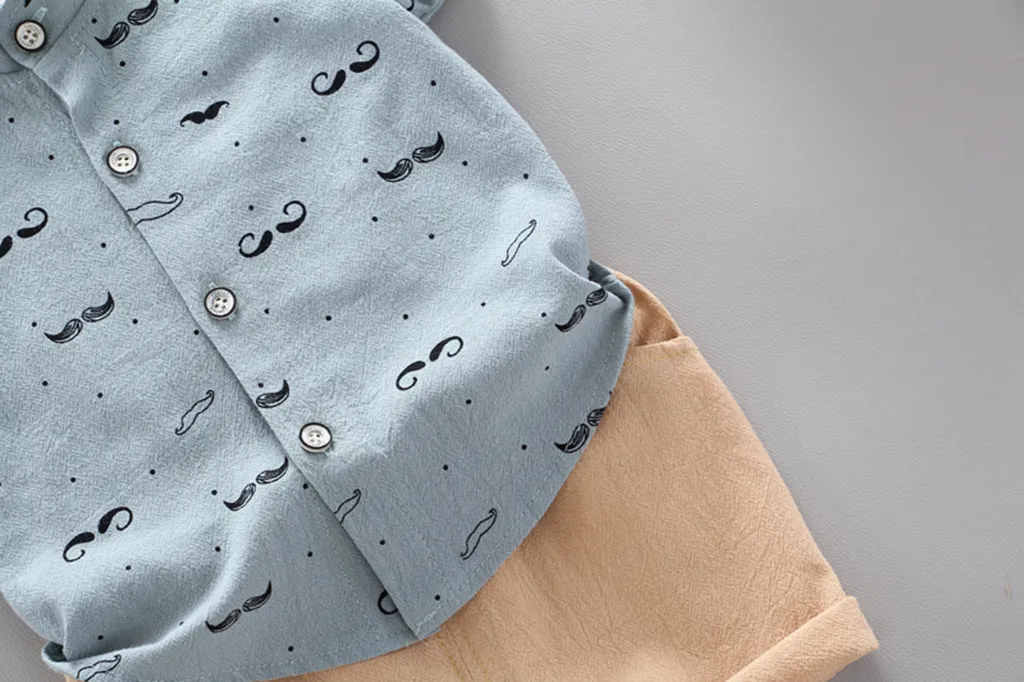 Футболка с принтом для маленьких мальчиков; топы; однотонные шорты; брюки; комплект для джентльмена