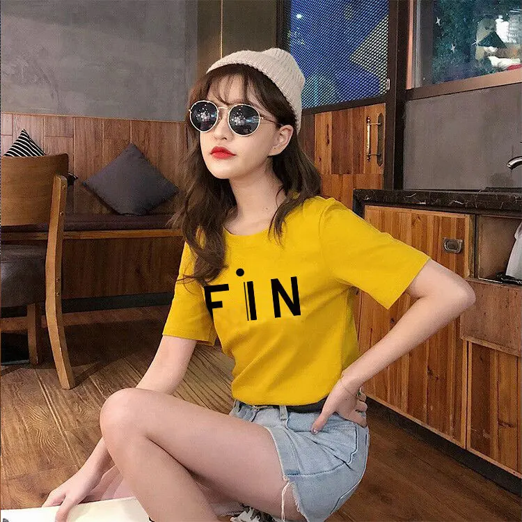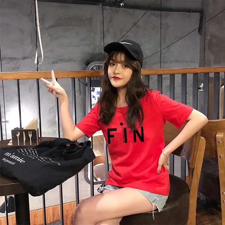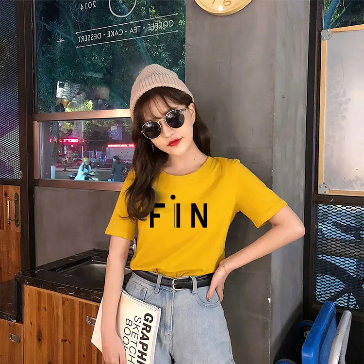 Новая модная женская футболка из хлопка с коротким рукавом и круглым вырезом