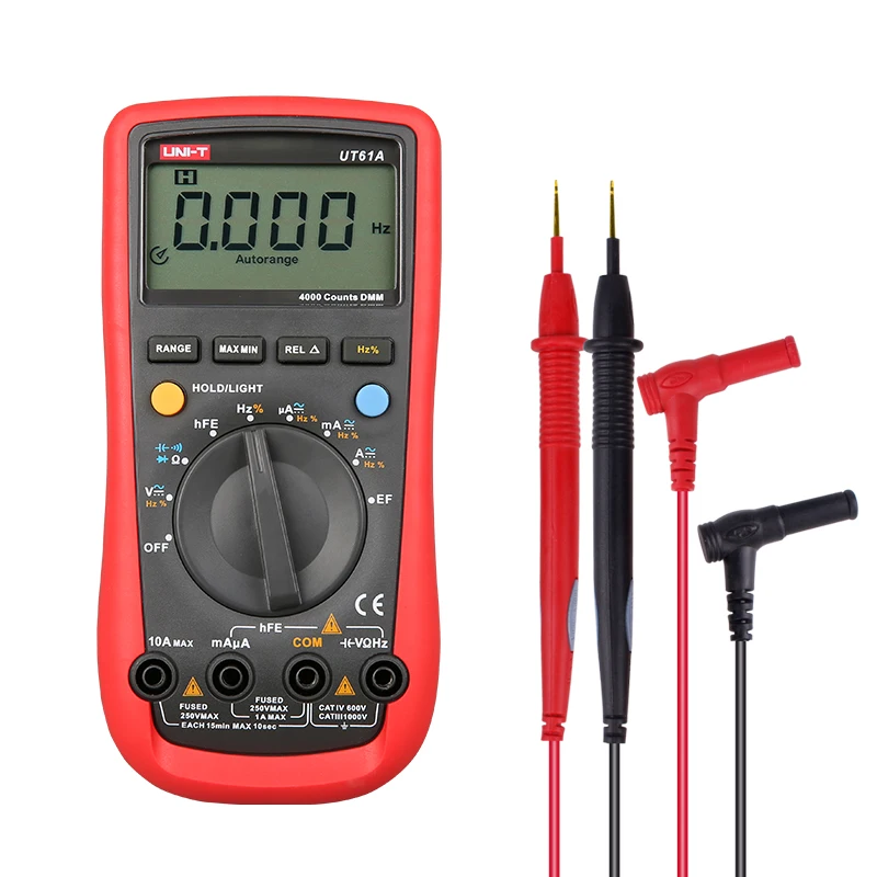 Серия UT61 соответствует стандартам CE, ETL и GS. Эта серия представляет собой Автоматический диапазон с возможностью выбора истинных моделей RMS (UT61D/E). Эта серия имеет множество функций и сочетается с высокой степенью безопасности CAT IV 600V. Подходит для современных электронных и электрических пользователей.1. Автоматический диапазон