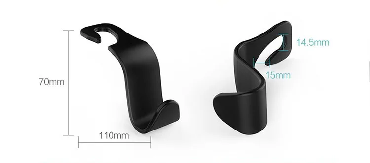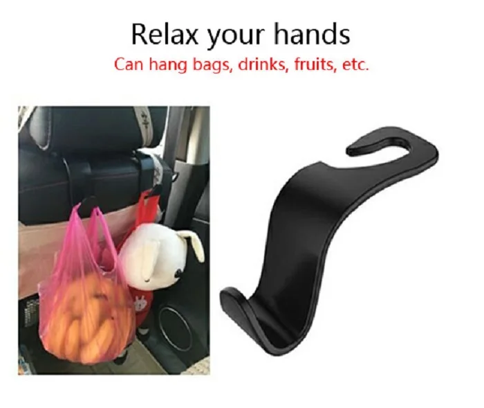 Car Seat Hook Description: Car Seat Hook is to deal with most of your belongings in the car. Help organize effectively, turn wasted space into storage space. Perfect for groceries, handbags, grocery bags, purses, umbrellas, shopping bags, etc. Special half open design, easy to install, no need to take off the headrests. High quality ABS materials make it bearing up to 20kg. Material: Plastic Color: Black (As pictures show) Dimension: approx. 11*7cm Weight: approx. 23.5g Package Contents: 2 * Storage Hook