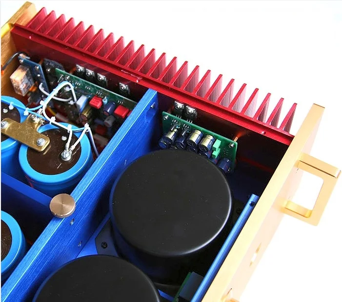 1. Алюминиевый Чехол для рукоделия 2. Два бескислородной меди 300 Вт тороидальные трансформаторы, независимый источник питания для левого и правого каналов для обеспечения достаточного разделения и энергии 3. 4 конденсатора Sprite или BC 75V39000UF 4. Японская схема защиты динамика Omron и высокомощная мягкая схема запуска. Держите машину и колонки в безопасном состоянии.