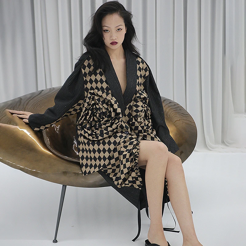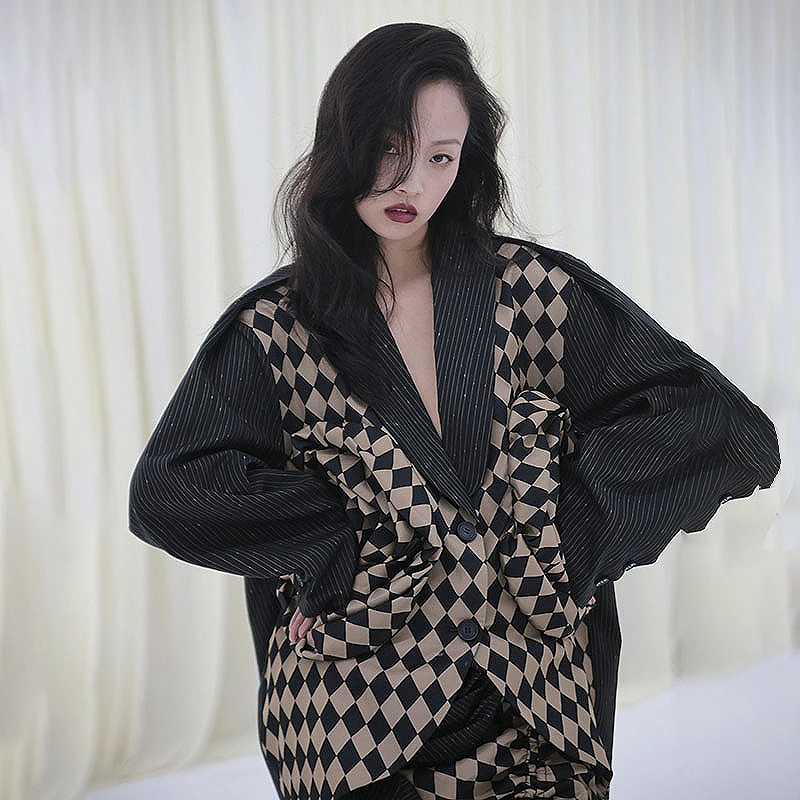 Luxury Design Женщины Потрясающие Sexy Спинки Бинты Черный Пиджаки Зубчатый Осень High Street