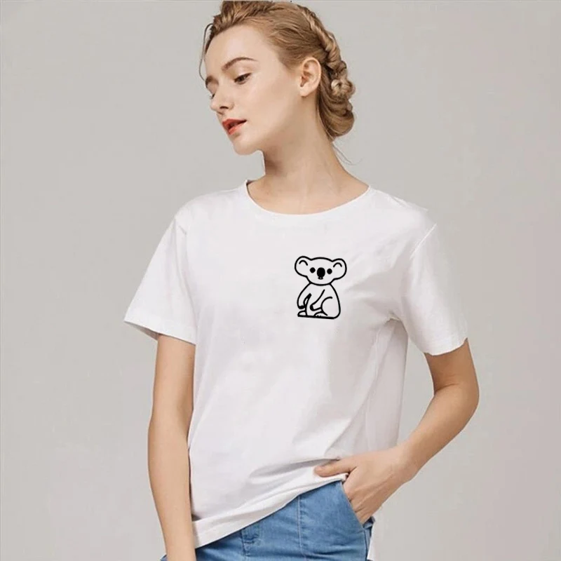 Женская футболка с карманом Koala, Повседневная футболка Kawaii, с надписью «Save Koala», летние хлопковые топы, Прямая поставка
