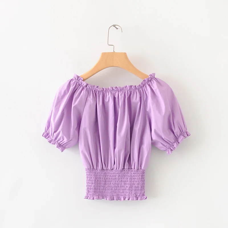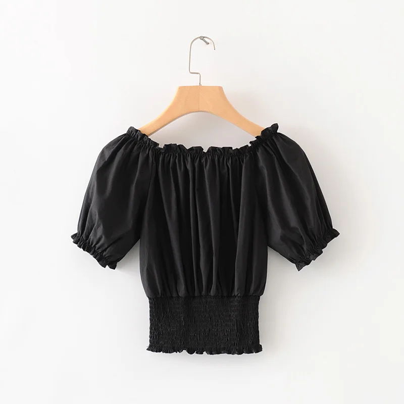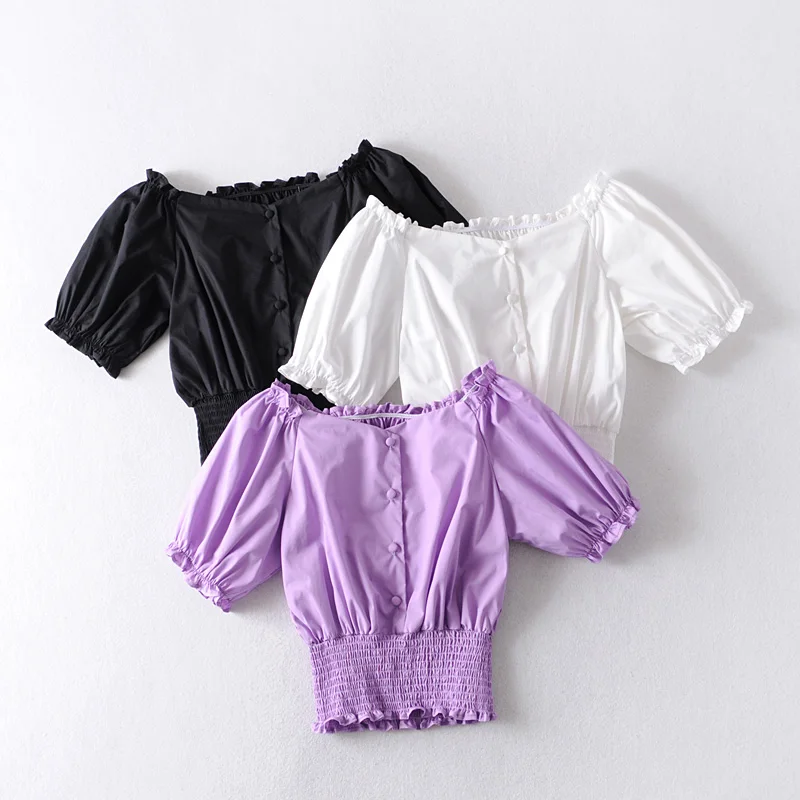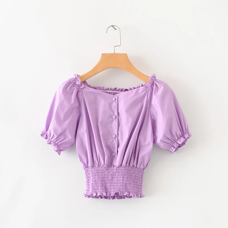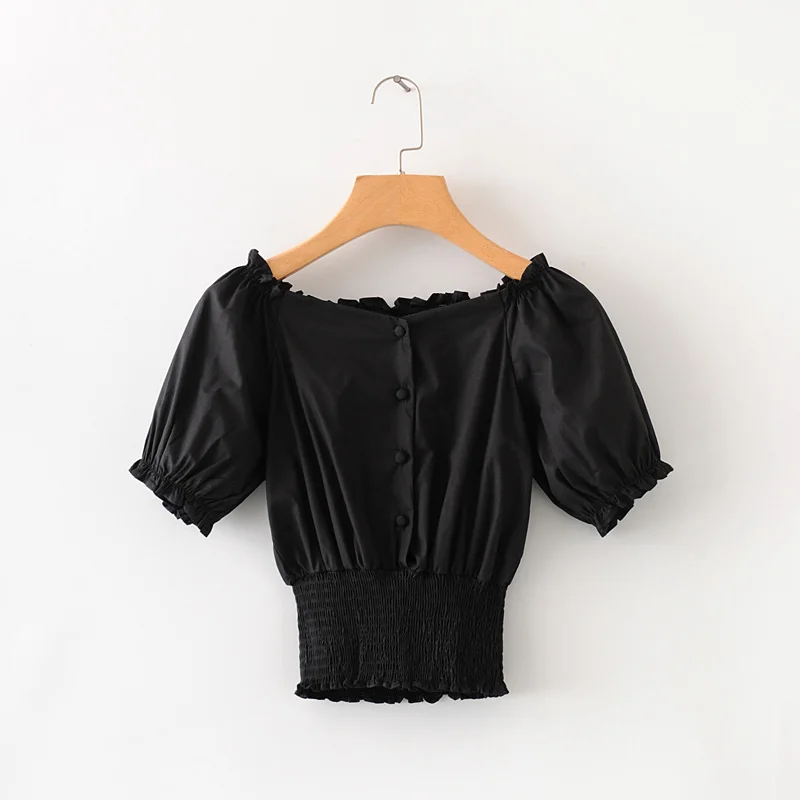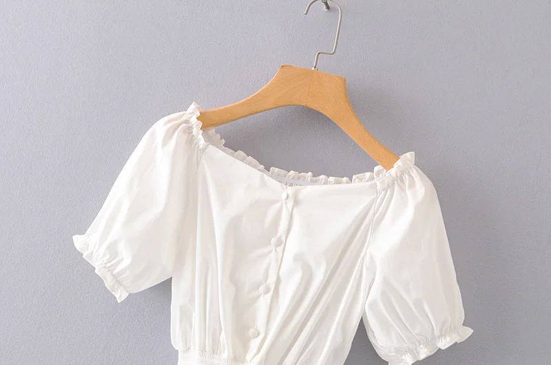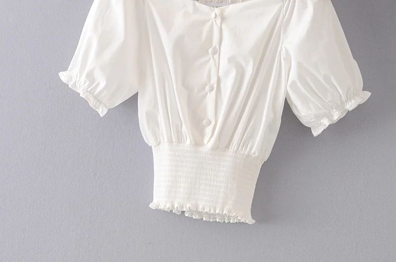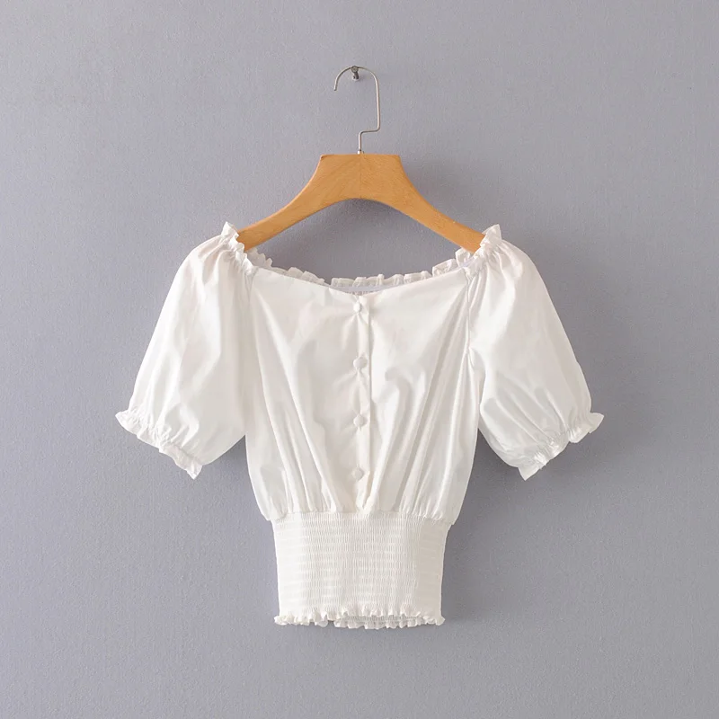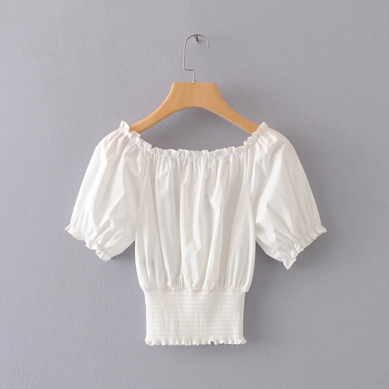 SheMujerSky Женская белая милая блузка с рюшами, рубашки с коротким рукавом, топы с эластичной резинкой на талии, летние блузки 2020