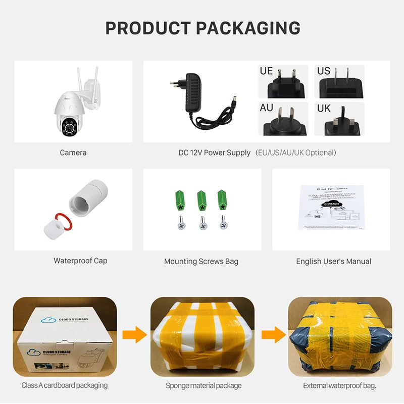 * Водонепроницаемость IP66 * Потрясающее HD видео 2.0MP с двойным потоком и сжатие видео H.264. * Разрешение Full HD 1080P 25 кадров в секунду. * Вы можете подключиться к сети по беспроводной сети или RJ45 к проводной сети. * Полноцветный день и ночь. * Мощный IR-LED. * Улучшенное двухстороннее аудио со встроенным микрофоном и динамиком. * Встроенный слот карты Micro SD, способный хранить до 128 ГБ кадры (sd-карта не входит в комплект). * Поддержка Amazon Cloud Service.standard/premium AWS plans (требуется дополнительная оплата). * Умный двойной говорящий, умный красочный видео в ночное время, функции AP * H.264 алгоритм сжатия основного профиля, отображение реального времени в реальном времени и запись разрешения HD