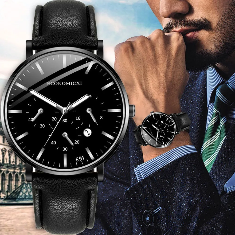 Мужские Роскошные спортивные часы Busine, аналоговые спортивные кожаные кварцевые мужские часы