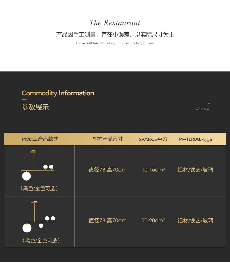 1. Тип изделия: минималистичный светодиодный подвесной светильник 2. Материал: железо, стекло, алюминий 3. Размер: 3 головки-диаметр 78 см 4 головки-диаметр 78 см 4. Базовый тип: G9 (Примечание: включает лампу!) 5. Цвет корпуса: черный/золотой 6. Напряжение: AC90-260V (подходит для всех стран!) 7. Применение: отель, Ресторан, Бар, лобби, офис, гостиная, столовая и т. Д.