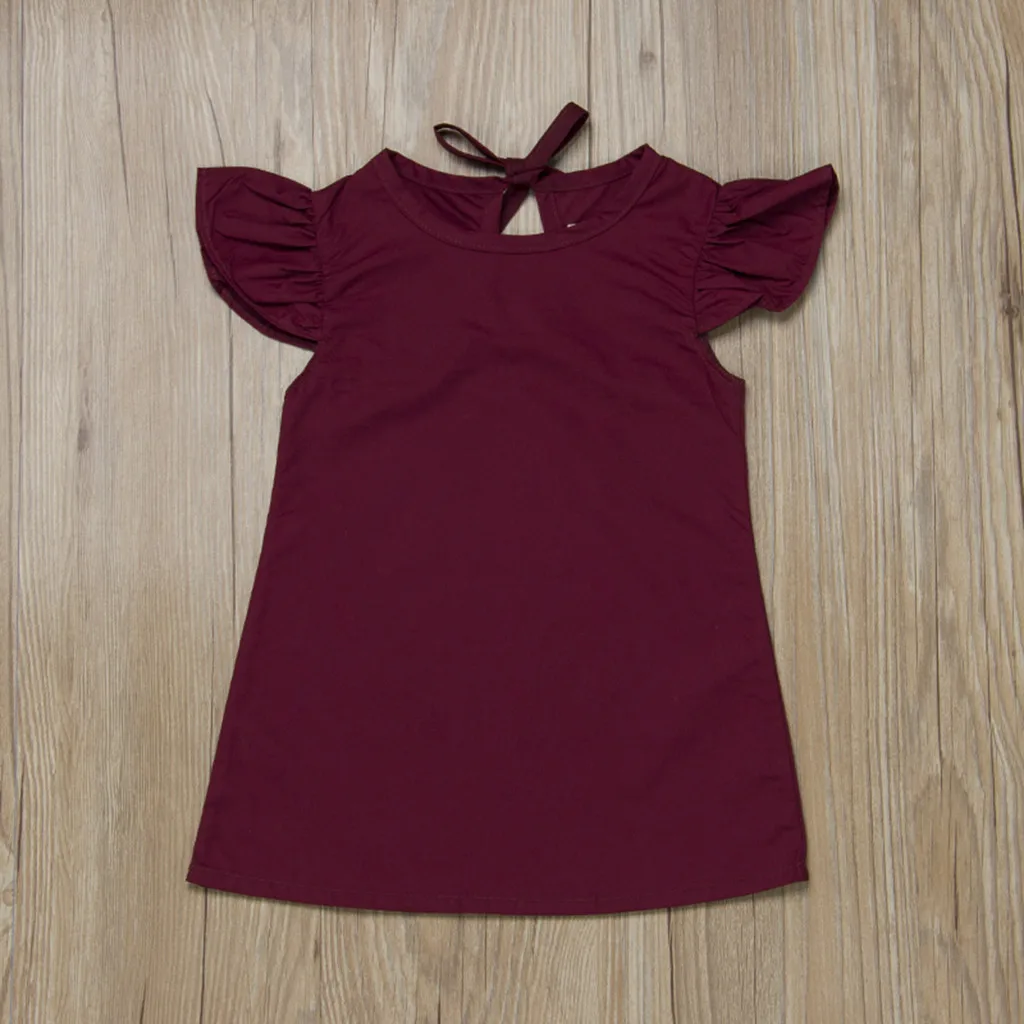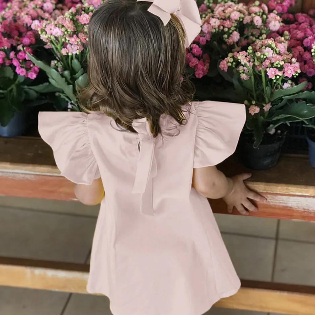 Летнее однотонное платье с бантом и рукавами-крылышками для маленьких девочек, платья
