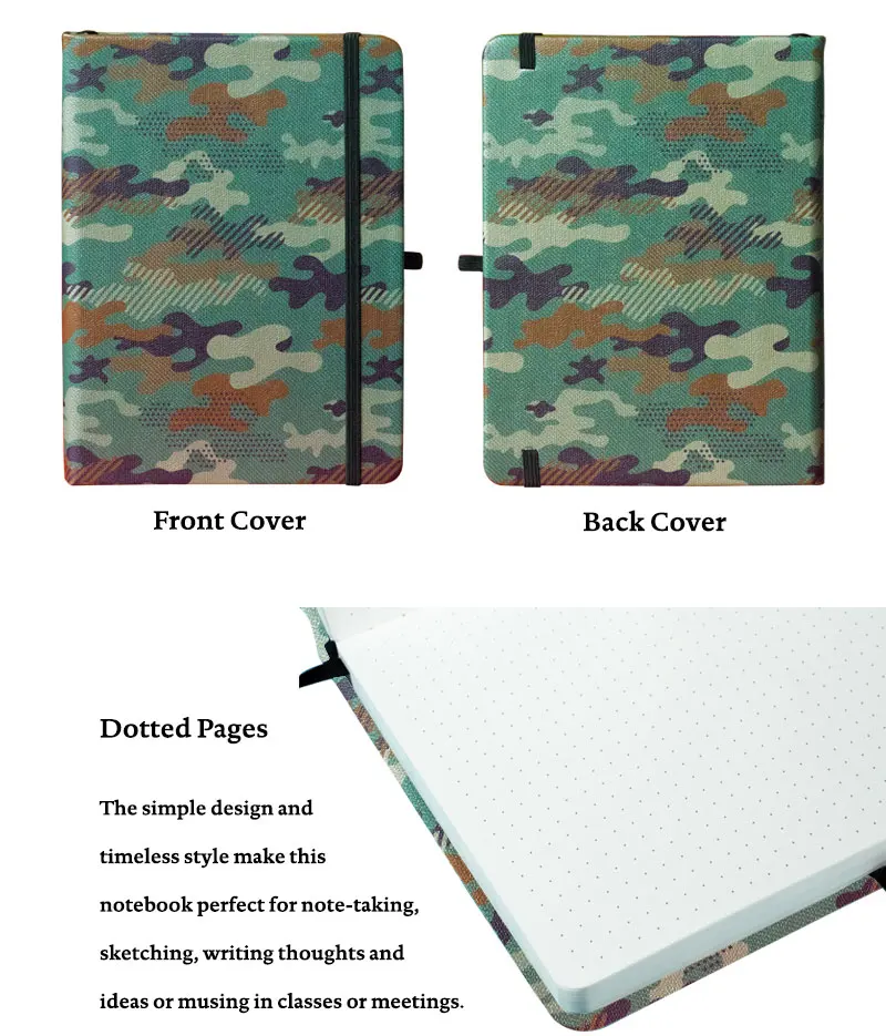 Материал чехла: Жесткий чехол из ПУ Материал бумаги: 160 ГСМ слоновая кость бумага без дерева Размер крышки: 138x186мм Внутренний стр: 80 листов Макет страницы: сетка в горошек Особенности: эластичная застежка, расширяемый внутренний карман, лента, петля для ручки, открывается плоский на 180 °