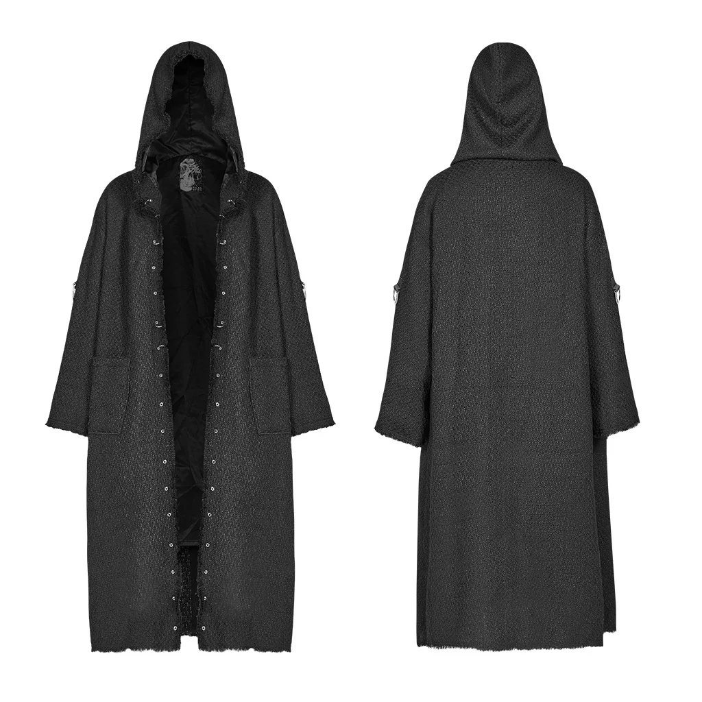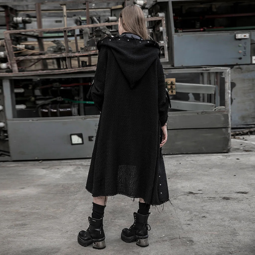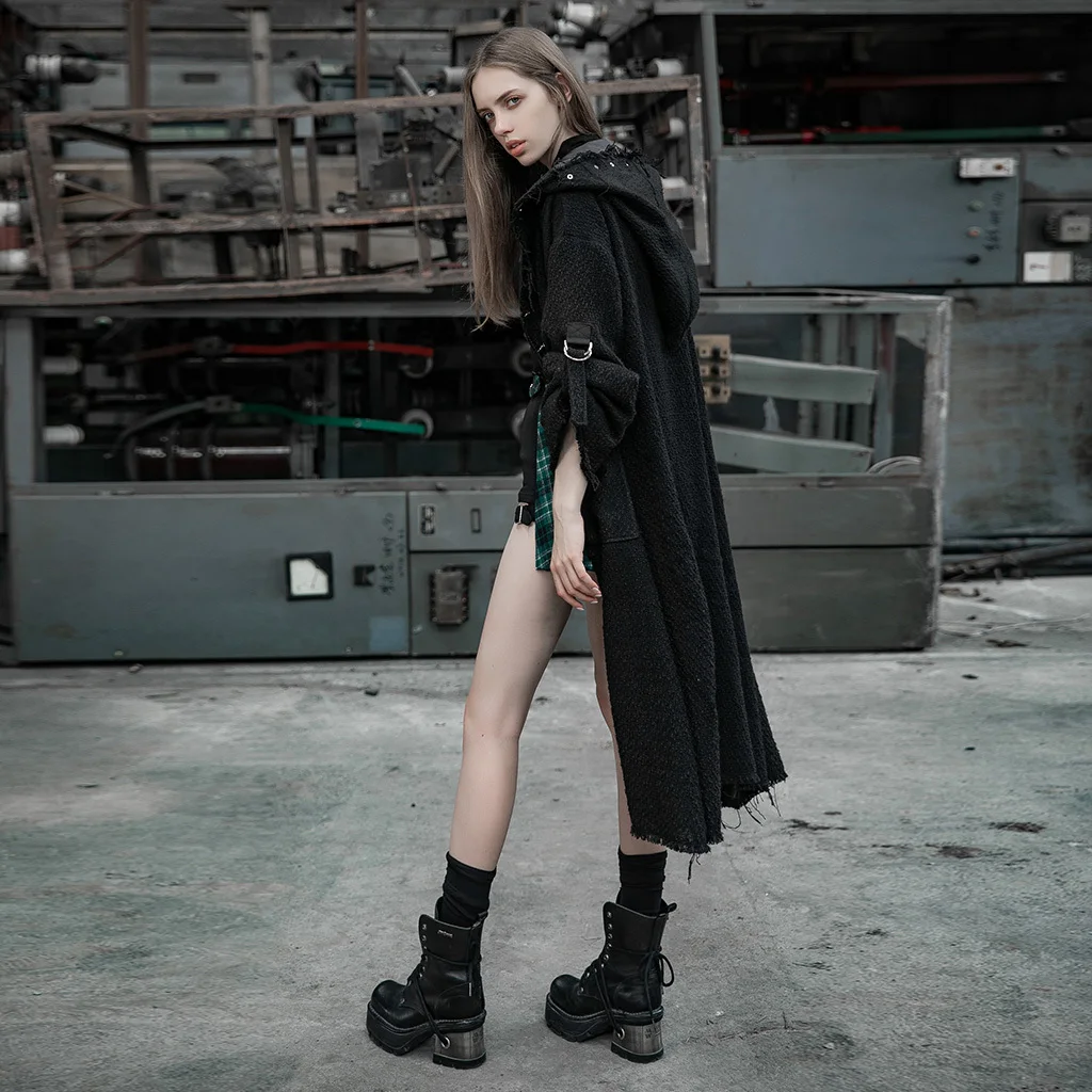 Классическое черное шерстяное тонкое пальто с капюшоном и длинными рукавами, украшенное ушками, Готическая Женская свободная длинная куртка, OPY-362DQF в стиле панк