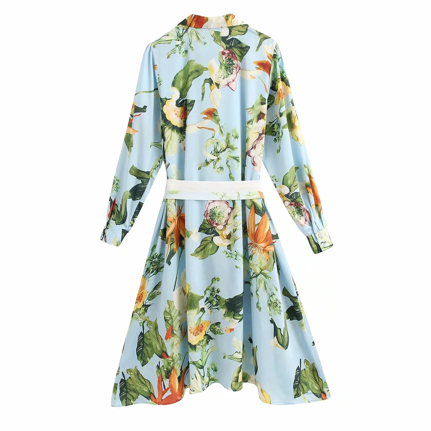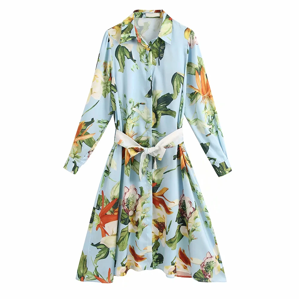 Платье с воротником и длинными рукавами. Боковые карманы в шве, ремень из той же ткани и застежка на пуговицах спереди, скрытая планкой.