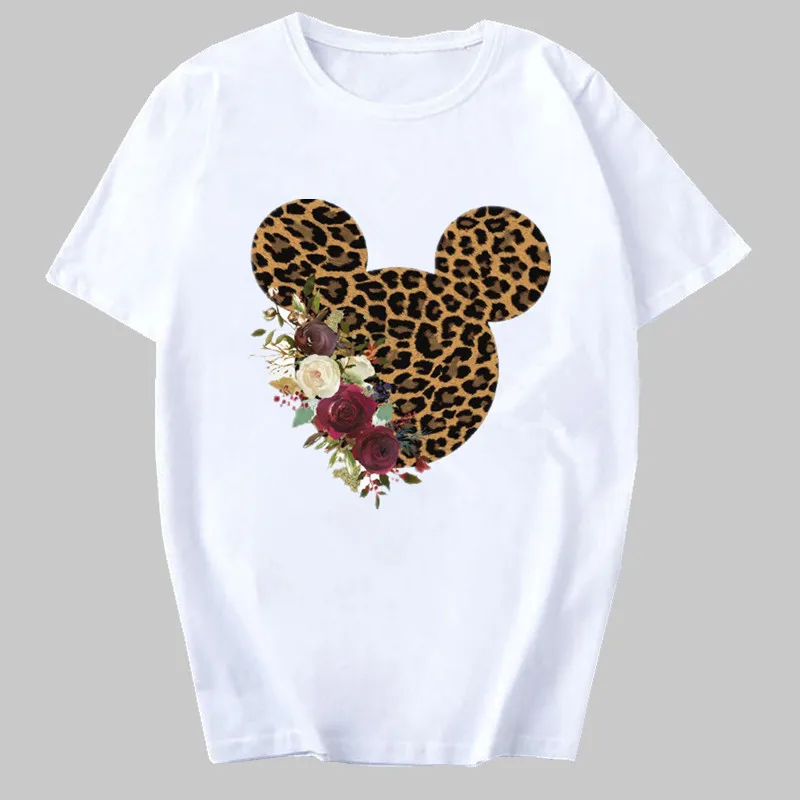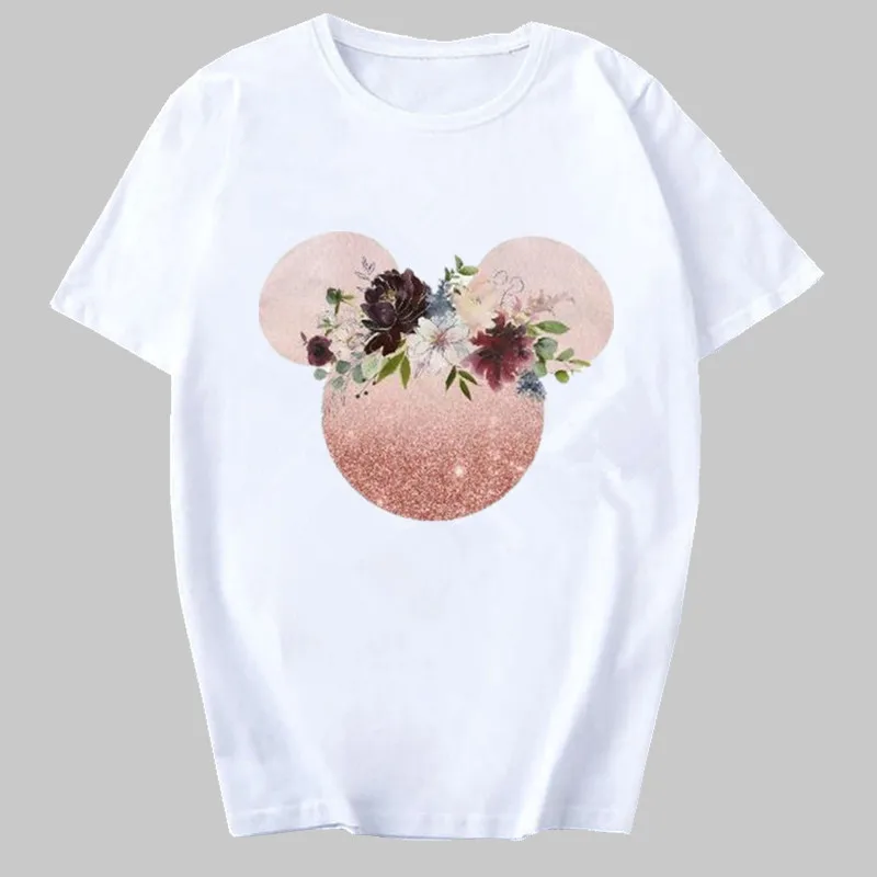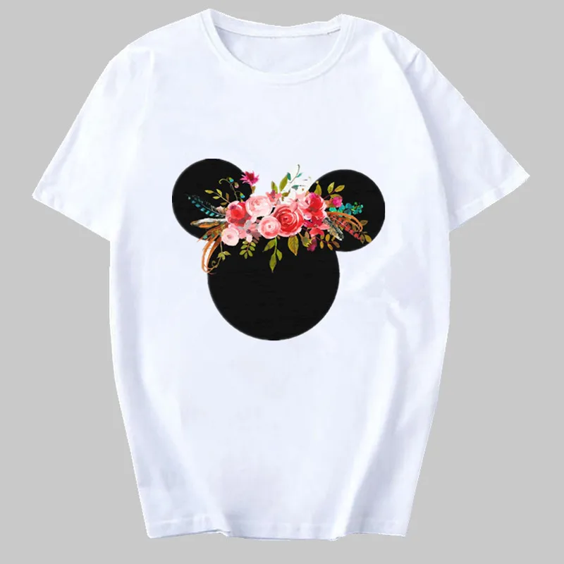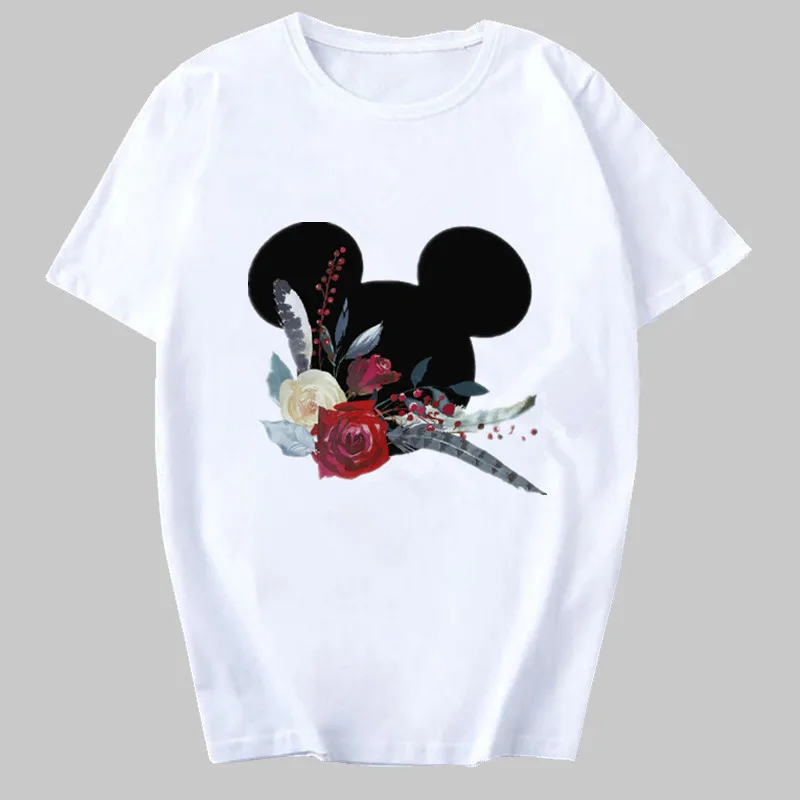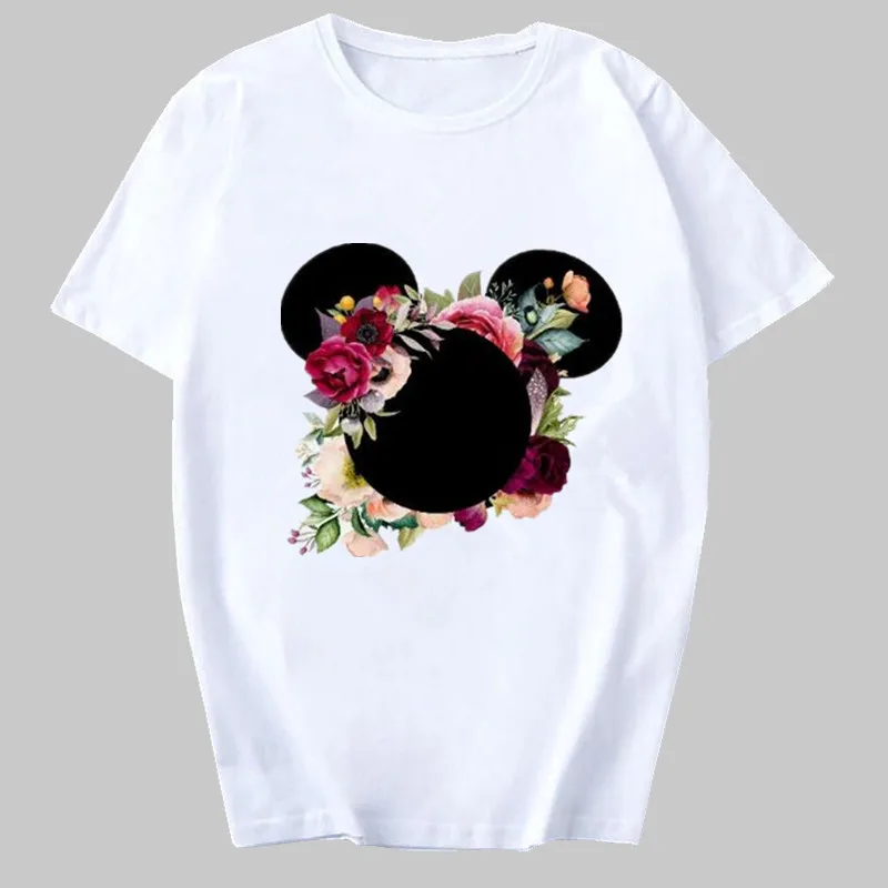 Женская футболка, модная женская футболка, топ с изображением мышки и цветов, Повседневная футболка, женская футболка Kawaii Harajuku, футболки, Camisas Mujer, одежда