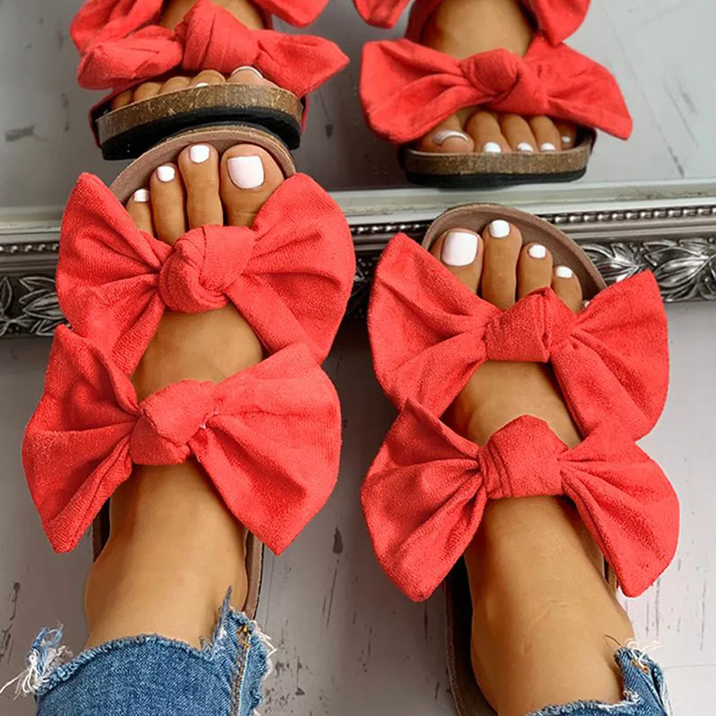 Женские сандалии; римские тапочки на плоской подошве с бантом; Повседневная пляжная Домашняя и Уличная обувь